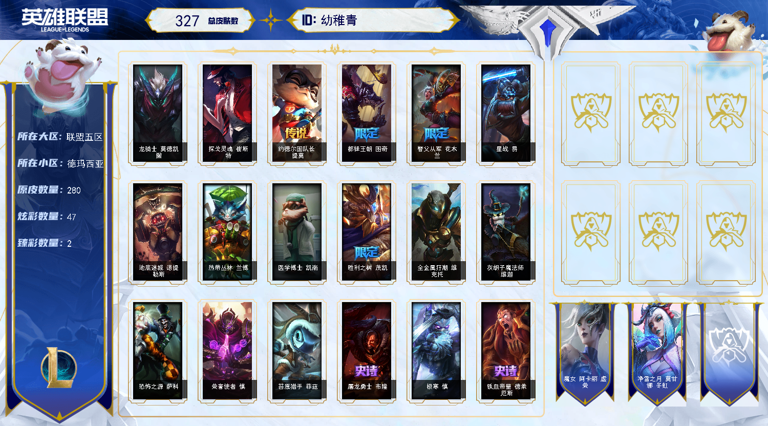 【全英雄】【德玛西亚】【263皮肤】碧玉之牙丨冠军之刃丨蛇年安妮丨神龙烈焰丨海贼瑞兹丨宇航员丨神拳丨