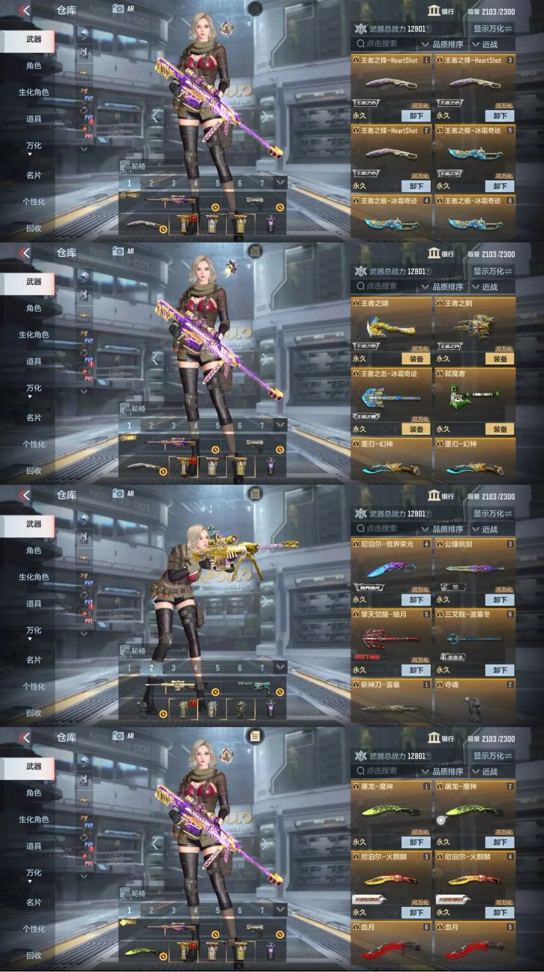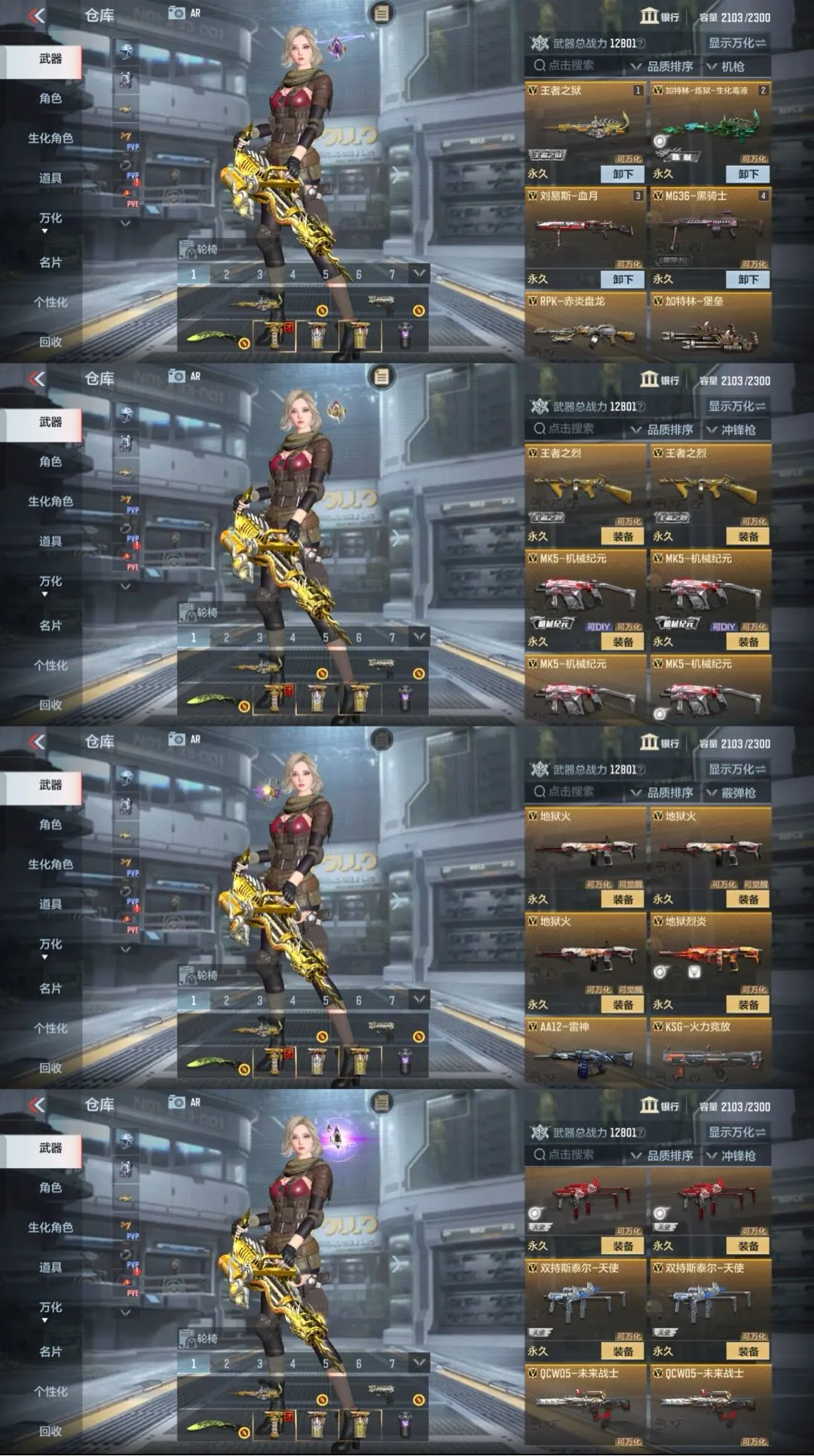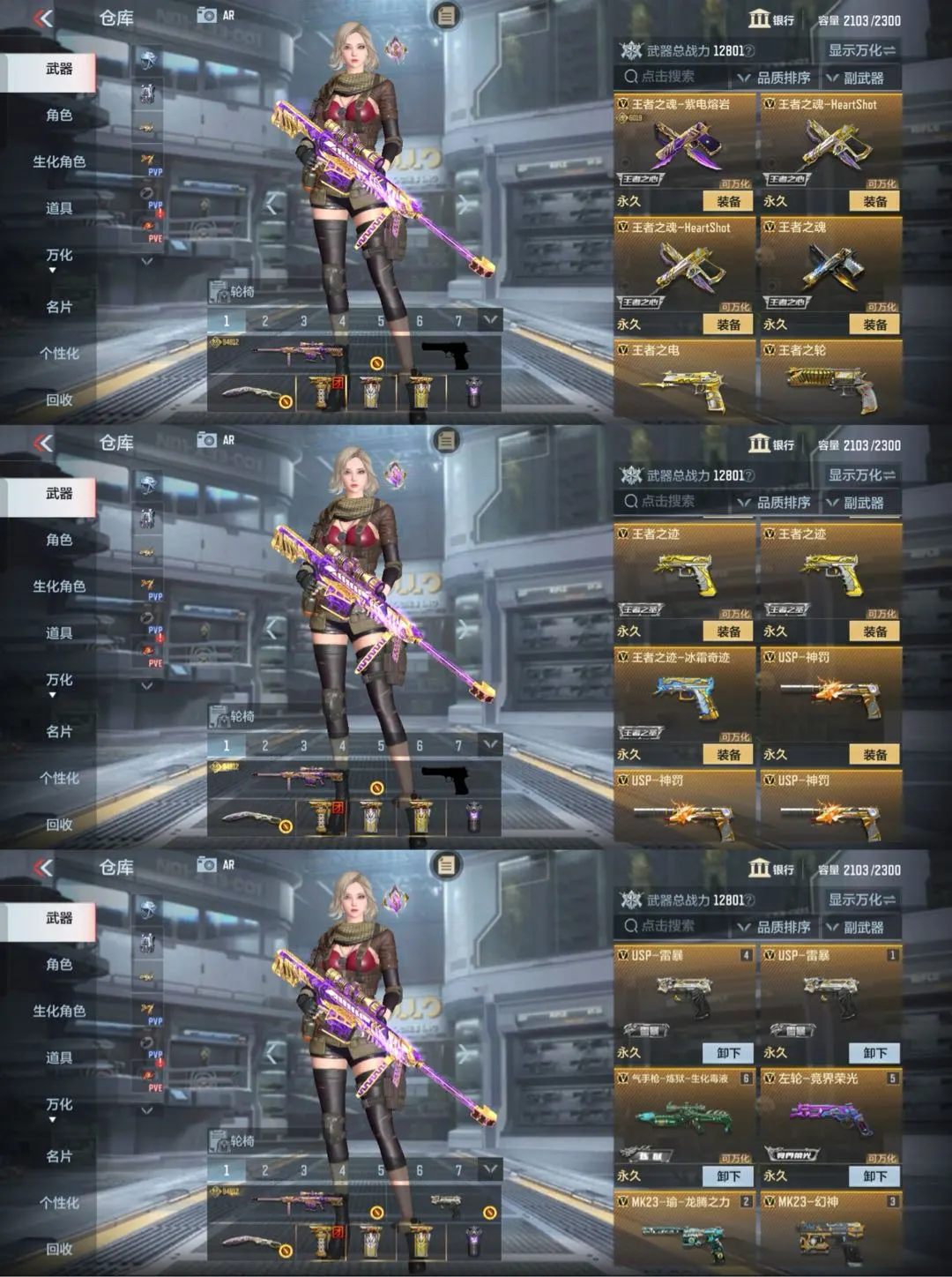 ❤️🔥常用步枪:紫电熔岩/冰霜王戮✨女团王心至尊✨女团/冰霜/白金血钻至尊✨冰霜王武至尊✨冰霜王圣至尊✨冰霜王翼至尊✨冰霜王势✨燃竞王影✨星象✨奉先✨仲达过载✨龙腾瑜✨仁德✨孟德✨策霸魂✨常胜✨竞界荣光✨雷霆✨波塞冬✨常胜✨游骑兵紫魇✨美杜莎✨81光明✨81阿波罗✨MK47机械✨雷霆✨