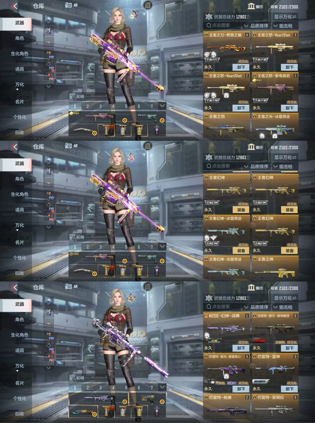 ❤️🔥狙击枪:紫电熔岩/女团王怒至尊✨冰霜王者幻神至尊✨王者之神套✨燃竞王力✨幻神战舞套✨枪娘✨雷神✨安琪拉✨毁灭诸神黄昏✨极光能量核心✨