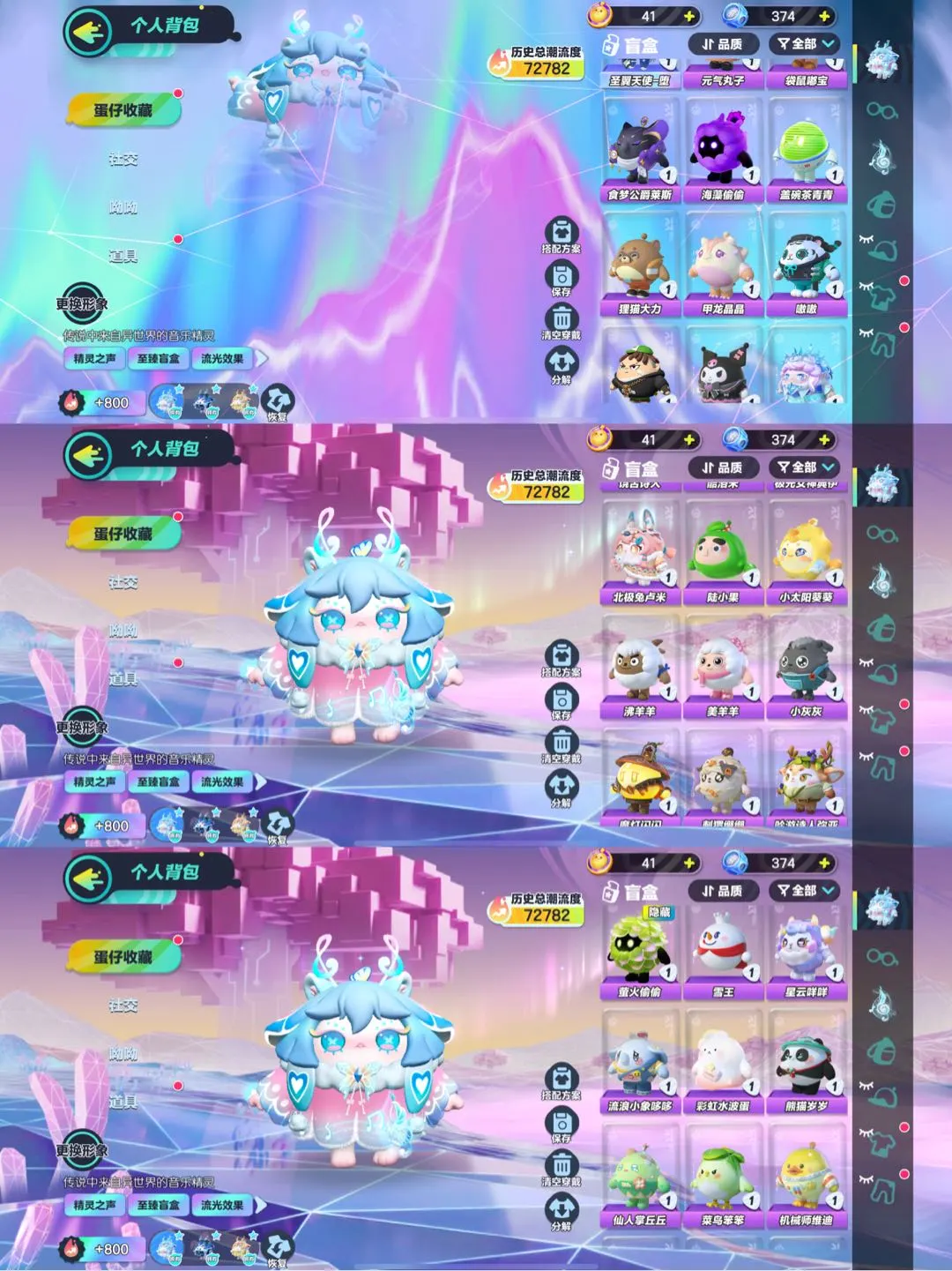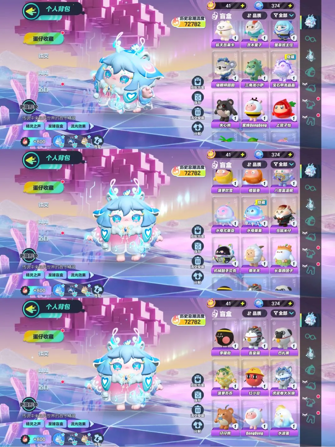 典藏:宝石甲龙晶晶 萤火偷偷 水母莱莱 橙留香 菠萝吹雪 上官子怡 蜜蜂DongDong 失心熊 三角龙小萨 催眠师困困 萤草班主任 茨木童子 航天员莱卡 机械师维迪 菜鸟笨笨 仙人掌丘丘 饶舌诗人 熊猫岁岁 彩虹水波蛋 萌兔阿奇 星云咩咩 雪王 海藻偷偷 吟游诗人弥亚 刺猬绷绷 魔灯闪闪 嗷嗷 小灰灰 美羊羊 沸羊羊 小太阳葵葵 菠萝苏苏 陆小果 北极兔卢米 极光女神典伊 酷洛米 DongDong 甲龙晶晶 狗蛋阿甜 淘气丸子 狸猫大力 盖碗茶青青 松饼小红帽 甜心猫萝拉 旱獭 水波蛋 仔仔熊 虎皮卷大灰狼 食梦公爵莱斯 红小豆 吾皇猫 袋鼠嘟宝 李建勋 流浪小象哆哆 长草颜团子 巴扎黑 元气丸子 懒羊羊 机械鼓手贝克 仓鼠米仔 哞哞 水母尤莱亚 八音盒温妮