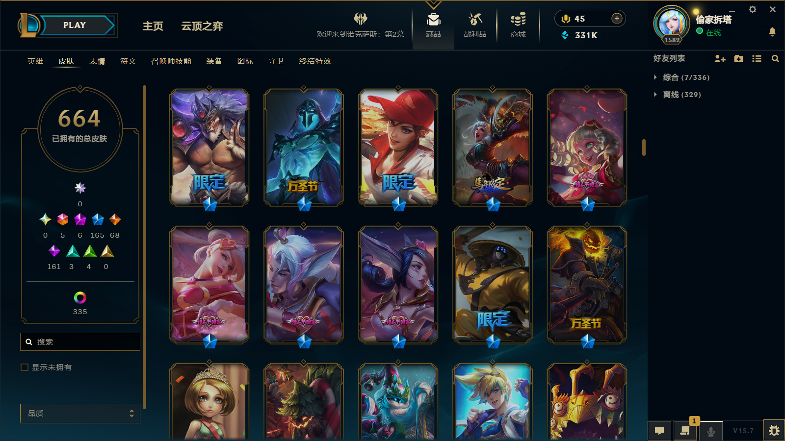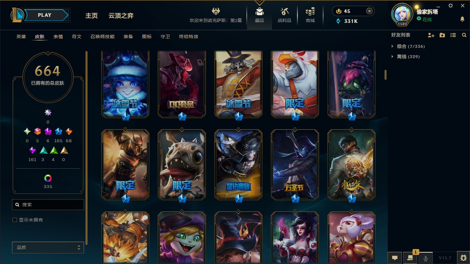 1120皮肤165限定⭐可排位全英雄⭐黑龙瞎诸神的黄昏⭐至臻卡莎斩星魔剑⭐奥斯曼大帝觅心卢锡安⭐战熊骑士卧虎藏龙⭐勇敢的心花木兰⭐广寒仙子地底世界⭐冠军劫冠军之矛⭐冠军之血冠军之箭⭐征服者卡尔玛⭐征服者维鲁斯⭐克格汪鸡里奥⭐银龙裁决哥特萝莉龙年琴女⭐等各种