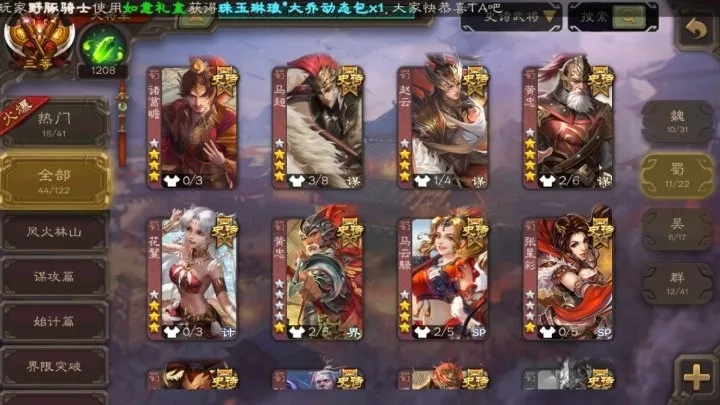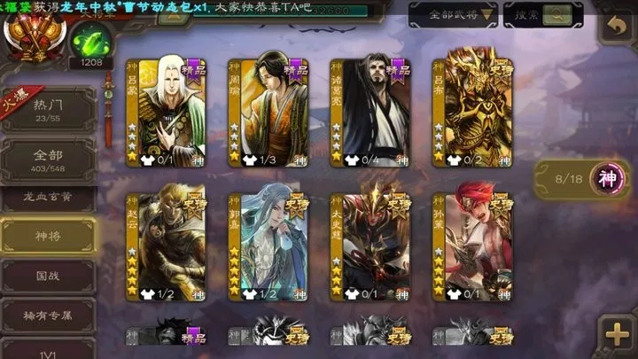 【全平台】 神孙策,神郭嘉,神太史慈,神赵云,神吕布,神吕蒙,神周瑜,神诸葛亮 谋夏侯渊,谋徐晃,界曹真,王粲