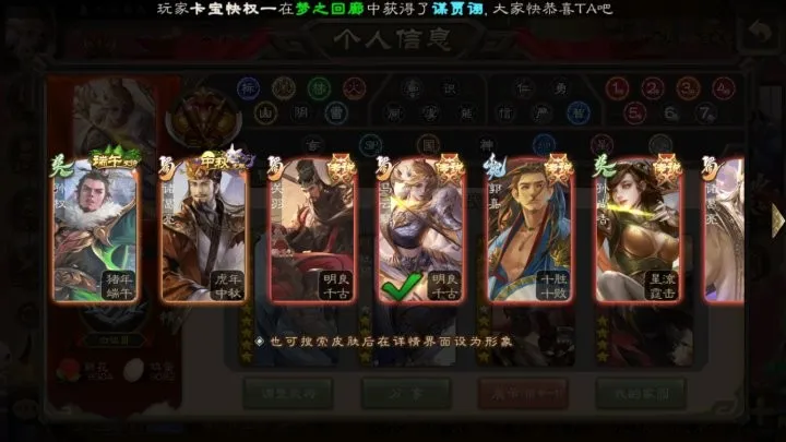 神孙策,神郭嘉,神太史慈,神赵云,神吕布,神吕蒙,神周瑜,神诸葛亮 谋夏侯渊,谋徐晃,界曹真,王粲,界钟会,界曹仁,界曹植,曹昂,戏志才 甘夫人,傅佥,谋赵云,谋张飞,谋马超,谋黄忠,谯周,花鬘,诸葛瞻 谋韩当,桥公,谋吕蒙,骆统,界朱然,界步练师,界徐盛 谋卢植,谋陈宫,马日磾,谋杨婉,谋刘赪,谋华雄,星黄忠,孔融,界蔡夫人,马元义,阎圃,高览,羊祜,南华老仙,杜预,杨彪,荀谌,界李儒,界刘表,丁原,董承,界公孙瓒,星张辽,界高顺,麹义 大将军 举棋若定·戏志才,鼠年冬至·王元姬,十胜十败·郭嘉,灵魂歌王·留赞,战龙在野·神赵云