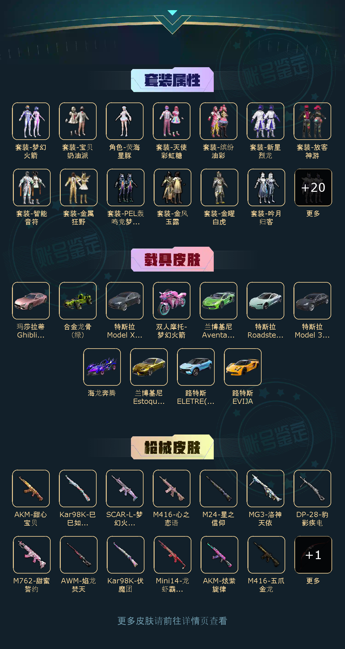 【粉色枪皮】M416-五爪金龙/M416-心之恋语/M762-甜蜜誓约/AKM-甜心宝贝/AKM-炫紫旋律/Mini14-龙虾霸霸/M24-星之信仰/SCAR-L-梦幻火箭/Kar98K-伏魔团/Kar98K-巳巳如意/AWM-焰龙焚天/MG3-洛神天依/爆炸猎弓-拳皇·狂花道