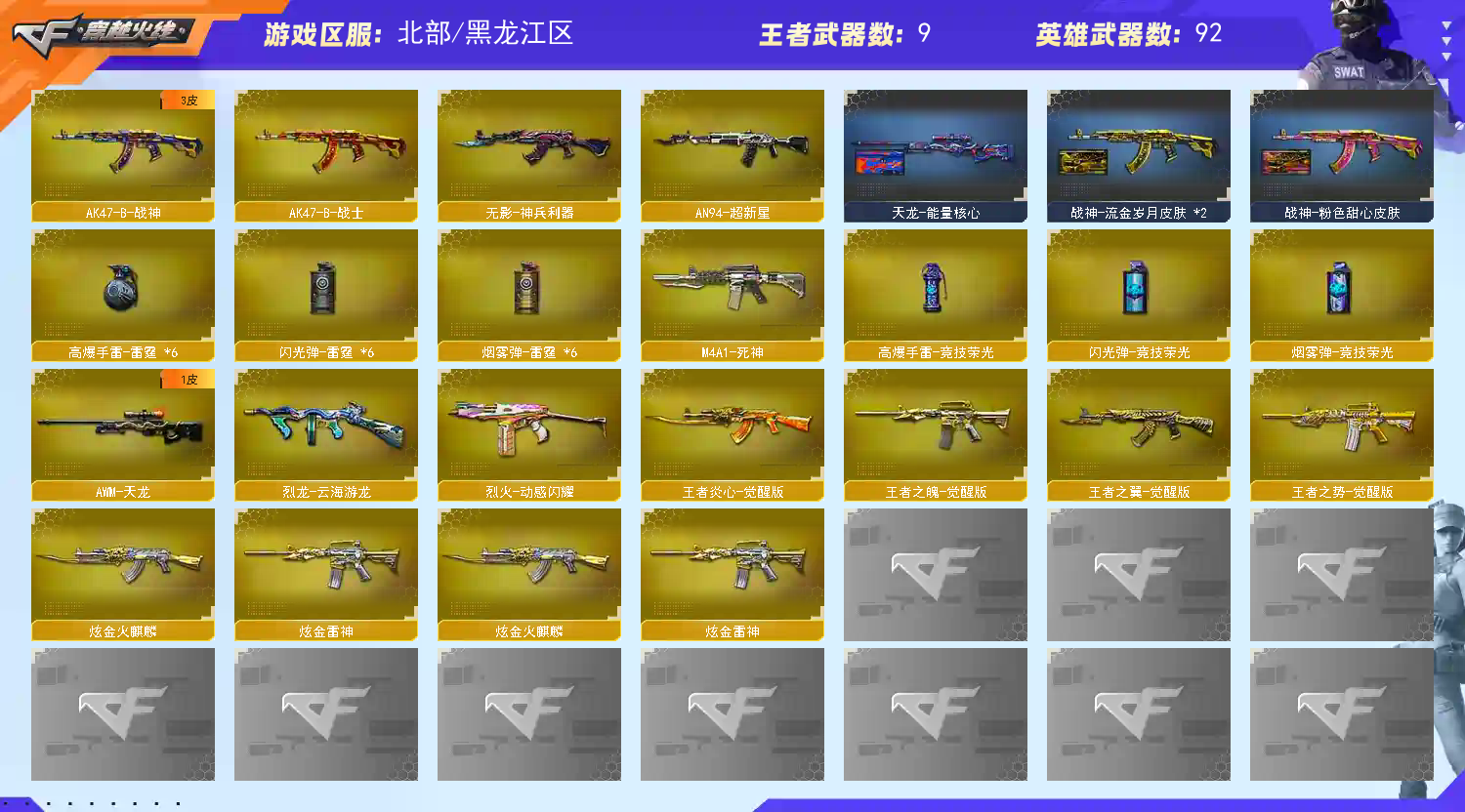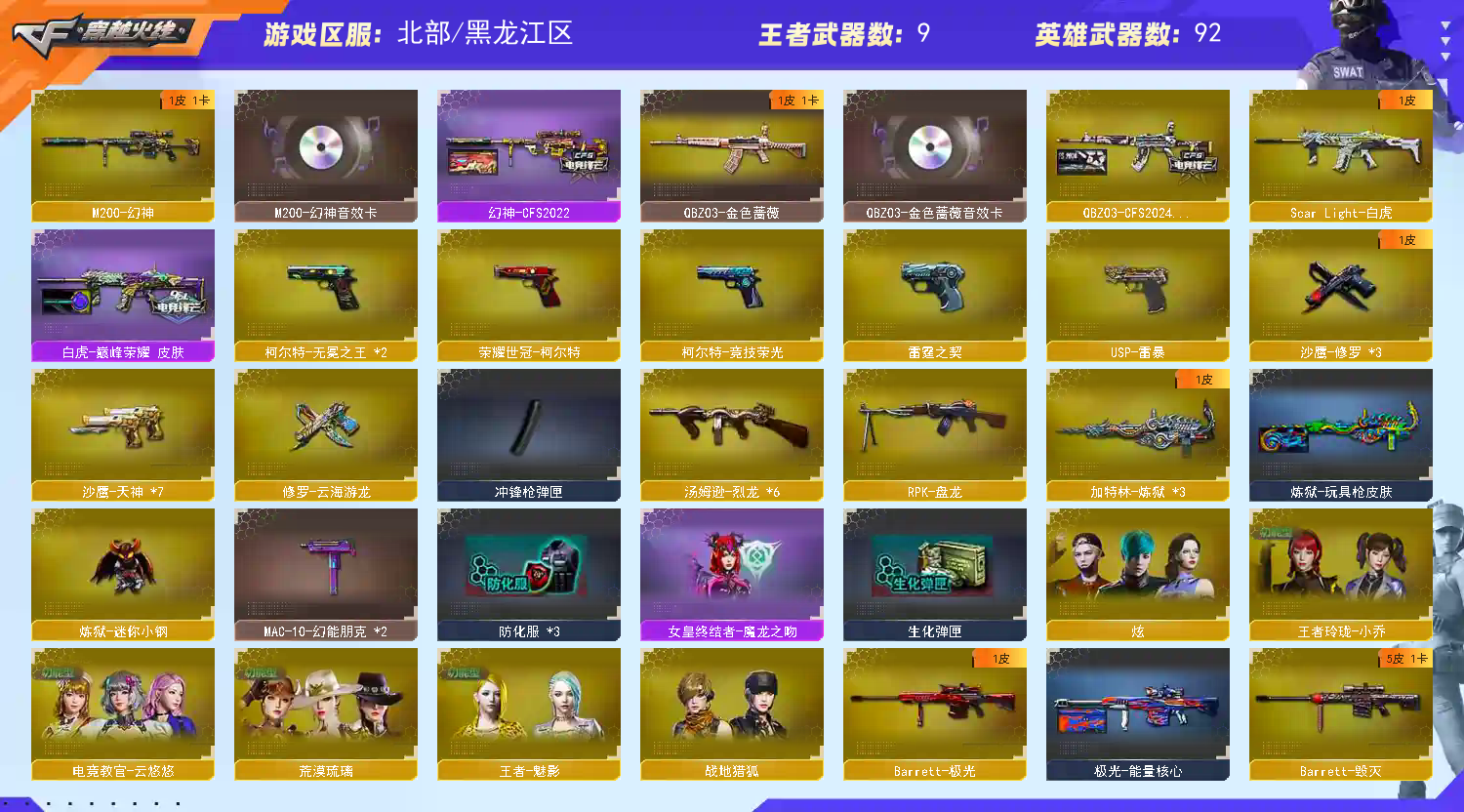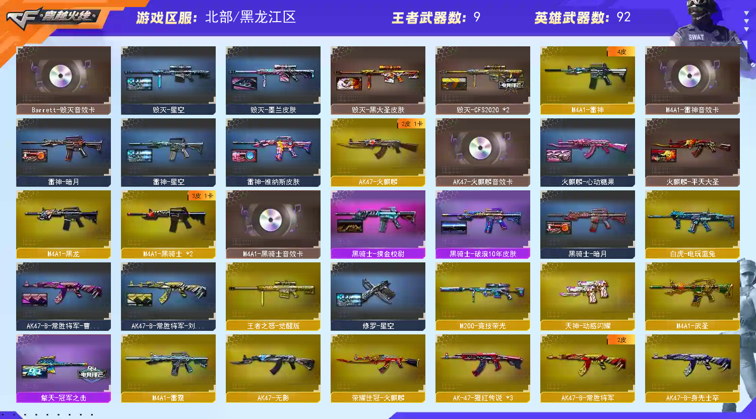 🔥火麒麟:+音效卡+雷神+CFSTAR+AG战队皮肤+心动糖果+平天大圣+炫金火麒麟+荣耀世冠火麒麟🔥