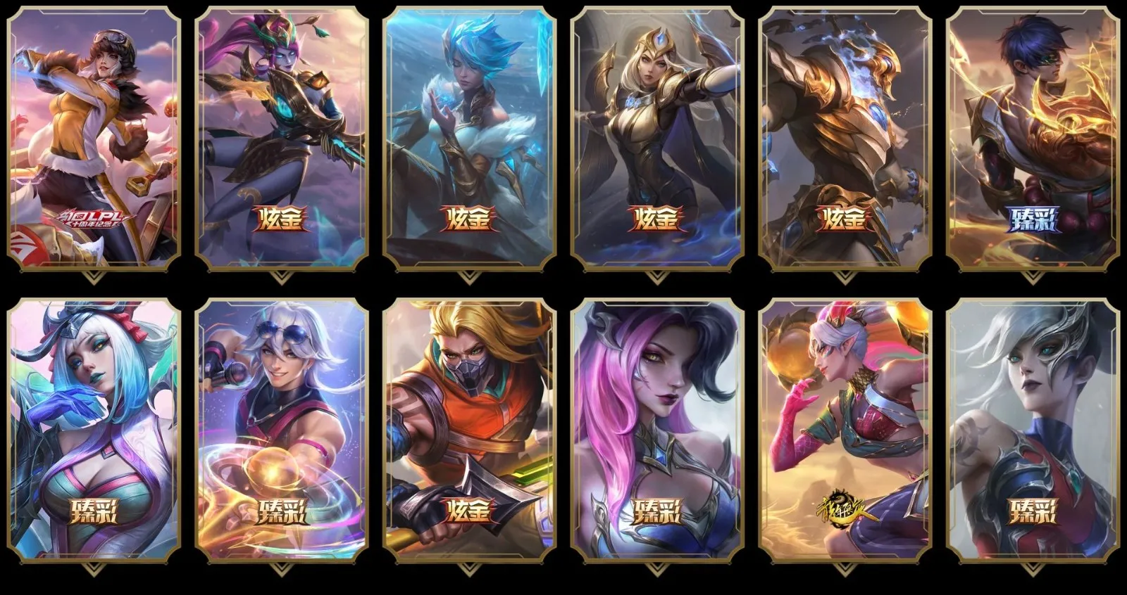【重要炫彩】无畏骑士瑟庄妮赤子初心 玉净夜叉凯特琳炫金神机 冰霜之刃艾瑞莉娅炫金 冠军之箭艾希凯旋圣装 冠军典狱长锤石凯旋圣装 神龙尊者圣龙李青龙腾云起 净雪之月莫甘娜冬虹 西部天使艾瑞莉娅贝利尔之怠 永恒之森霞樱落 魔女伊芙琳贪婪 未来战士艾克 野火首领艾克不忘初心 五杀摇滚III遗失的章节莫德凯撒迷幻 五杀摇滚III遗失的章节奥拉夫迷幻 西部魔影送葬人图奇忠诚 福牛守护者佛耶戈桃灯 地下都市梦魇德莱厄斯幻魅 可爱可爱粉红红黑默丁格 喵凯萌萌粉 霸天零式赛恩毁灭余晖 黯晶之眼维克兹凝结之焰 泳池派对璐璐笨笨暹罗猫 勇者奈德丽炫金 心之钢伊泽瑞尔天纵才华 墨之影武者亚索金墨耀影 魔女阿狸饕餮 天龙之子卡莎飞龙乘云 魔女阿卡丽虚荣