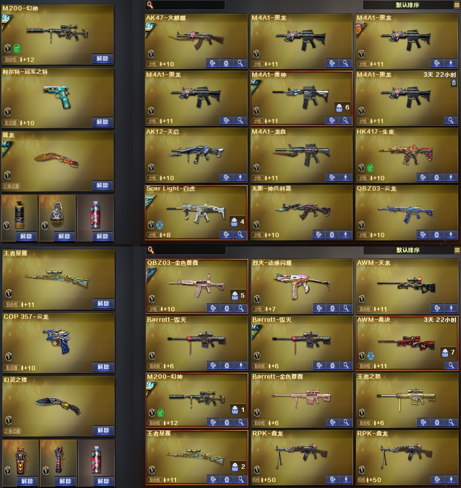 【允许排位】幻神三件套,满配手枪,冠军之特,白虎王者星霆,炽芒蝶刃,毁灭三件套,禁止外挂