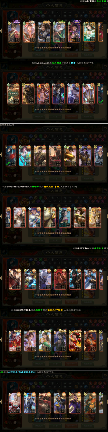 昭威淮南.司马昭(动)、谋谟之勋.钟会(动)、举棋若定.戏志才(动)、锋芒毕露.曹婴(动)、鼠年冬至.王元姬(动)、鼠年冬至.SP司马昭(动)、长坂败备.曹纯(动)、虎年春节.曹纯(动)、泰山捧日.程昱(动)、笔翰如流.王粲(动)、虎年春节.曹真(动)、龙年限定.荀彧(动)、猪年端午.曹丕(动)、牛年清明.曹丕(动)、鹰视狼顾.司马懿(动)、牛年立冬.司马懿(动)、鼠年春节.辛宪英(动)、独秉固志.王基(动)、虎啸生风.许褚(动)、神兵天降.邓艾(动)、猪年春节.曹冲(动)、鼠年端午.曹植(动)、稳定关右.钟繇(动)、登锋陷阵.张辽(动)、背水一战.张郃(动)、雄踞益州.刘焉(动)、扬刀立威.麹义(动)、龙吟破竹.杜预(动)、盛气凌人.许攸(动)、役使鬼神.左慈(动)、蛇年限定.左慈(动)、鸩杀少帝.李儒(动)、超脱于世.庞德公(动)、鼠年春节.兀突骨(动)、肝胆相照.苏飞(动)、鼠年七夕.吕布(动)、泪捻琵琶.蔡文姬(动)、驭魂千机.SP貂蝉(动)、黄天当立.张角(动)、每战必克.高顺(动)、龙困于渊.刘协(动)、单骑救主.SP赵云(动)、迅雷风烈张角(动)、斧引霹雳.星徐晃(动)、鉴往知来.神司马懿(动)、战龙在野.神赵云(动)、万人辟易.神甘宁(动)、监兵噬魅.神吕布(动)、绽焰摧枯.神陆逊(动)、兼资文武.神吕蒙(动)、陵光引灵.神周瑜(动)、吴王六剑.孙权(动)、猪年圣诞.陆逊(动)、牛年七夕.孙权(动)、猪年端午.孙权(动)、鼠年春节.周瑜(动)、琪花瑶草.徐氏(动)、鼠年春分小乔(动)、猪年大雪小乔(动)、星流霆击孙尚香(动)、烟水悠悠.孙茹(动)、鱼游濠水.孙茹(动)、牛年端午.孙鲁育(动)、长沙桓王.孙策(动)、兔年清明.孙策(动)、猪年七夕.孙策(动)、联刘抗曹.鲁肃(动)、破贼校尉.凌操(动)、鼠年春分.大乔(动)、猪年七夕.大乔(动)、绝世之姿.大乔(动)、龙年限定.诸葛亮(动)、明良千古.关羽(动)、啸风从龙.关羽(动)、虎年七夕.鲍三娘(动)、猪年圣诞.sp孙尚香(动)、鼠年中秋.关索(动)、猪年春节赵襄(动)、明良千古.胡金定(动)、鼠年春节.黄月英(动)、木牛流马.黄月英(动)、明良千古.刘备(动)、龙骧麟振.刘备(动)、猪年端午.刘禅(动)、牛年春节.马超(动)、截江救主.赵云(动)、蛇年限定.孙寒华(动)、猪年春节.董白(动)