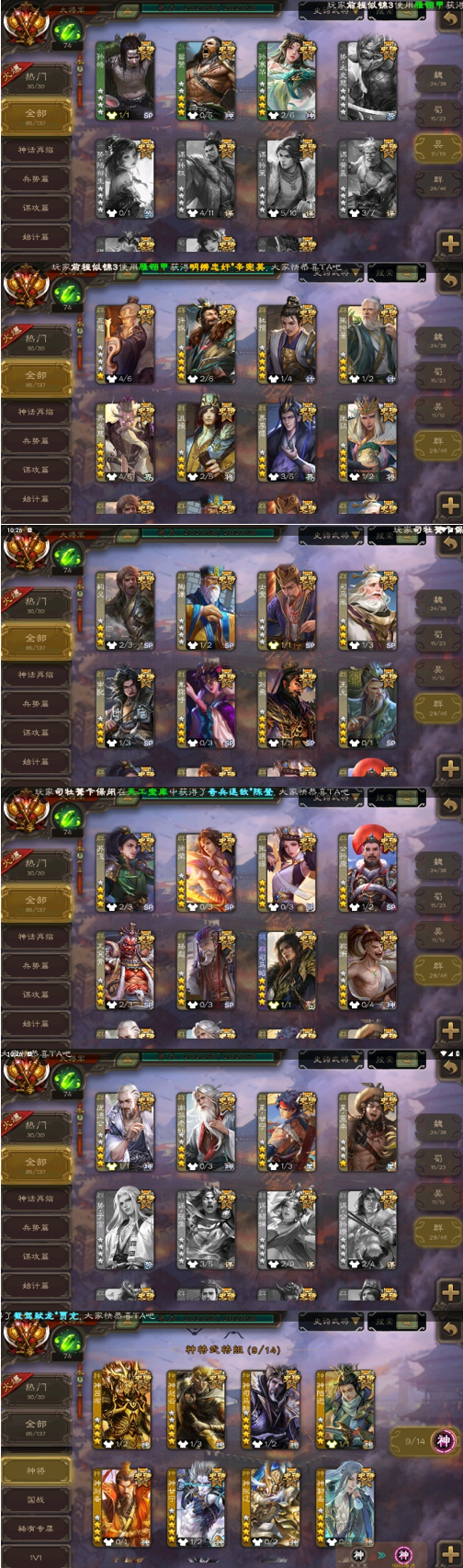 SP关羽、SP曹仁、SP蔡文姬、乐进、曹昂、诸葛诞、朱灵、文聘、SP姜维、张春华、钟会、曹冲、郭淮、满宠、界王异、界曹操、界司马懿、界夏侯惇、界张辽、界许褚、界郭嘉、李典、曹真、韩浩史涣、陈群、曹、曹休、钟繇、司马朗、王基、李通、郭皇后、孙资刘放、辛宪英、界甄姬、吕虔、鲁芝、蒯越蒯良、界典韦、界荀彧、界徐晃、杜畿、界曹丕、毌丘俭、界邓艾、张恭、贾逵、界曹植、界曹彰、界满宠、界郭淮、卞夫人、辛毗、界陈群、华歆、蔡贞姬、袁涣、崔琰、毛玠、阮慧、谋于禁、胡班、司马伸、谋郭嘉、谋夏侯渊、牛金、界夏侯渊、界曹仁、臧霸、孟达、唐咨、董昭、势夏侯尚