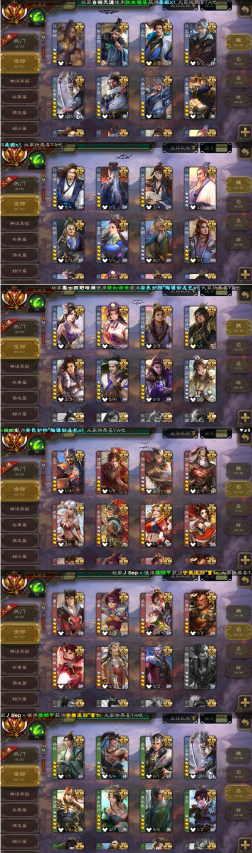 蔡文姬、伏完、刘协、界袁术、SP赵云、SP貂蝉、张宝、界华雄、伏皇后、李儒、界于吉、界张角、华雄、袁术、界华佗、界吕布、公孙瓒、蔡夫人、公孙渊、郭图逢纪、张鲁、蹋顿、严白虎、SP黄月英、董白、刘虞、曹节、蔡邕、界貂蝉、sp太史慈、张梁、卢植、刘琦、李傕、郭汜、界庞德、界颜良文丑、界袁绍、张济、樊稠、界董卓、刘繇、张绣、界蔡文姬、界高顺、董承、界刘表、星张辽、星徐晃、星张郃、界公孙瓒、丁原、胡车儿、韩遂、界伏皇后、荀谌、孔融、羊祜、高览、马元义、阎圃、谋杨婉、谋刘赪、鲍信、贾充、谋贾诩、何进、张任、李傕郭汜、孟达