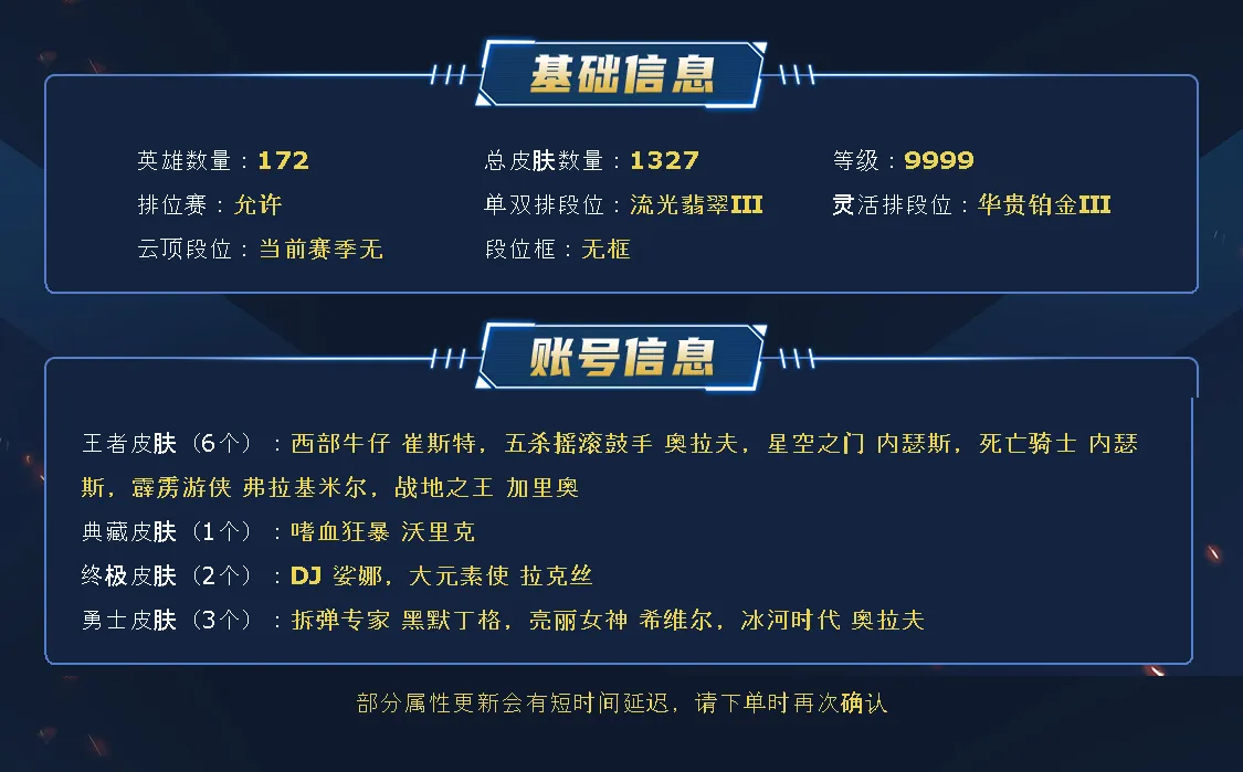 ~~喜欢记得收藏~~可排位~~1189皮全英雄~~租之前尽量查一下游戏ID,确保段位是您需要的,避免浪费您的时间~~请勿挂机逃跑故意送人头,谢谢合作,谢谢~~