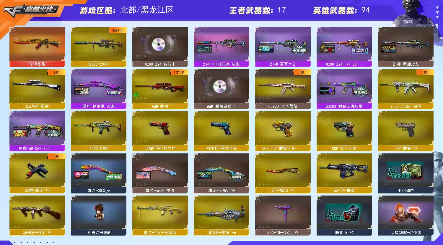北部天花板夜影💕幻神⑤皮裁决卡②炽芒N9周瑜冠军卡星神枪娘usp柯基G36幻影AG白虎满手枪⑥盘烈