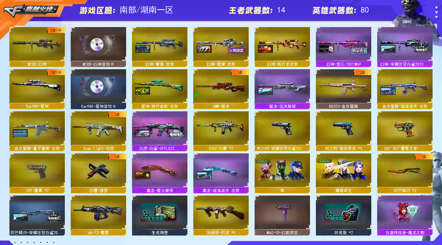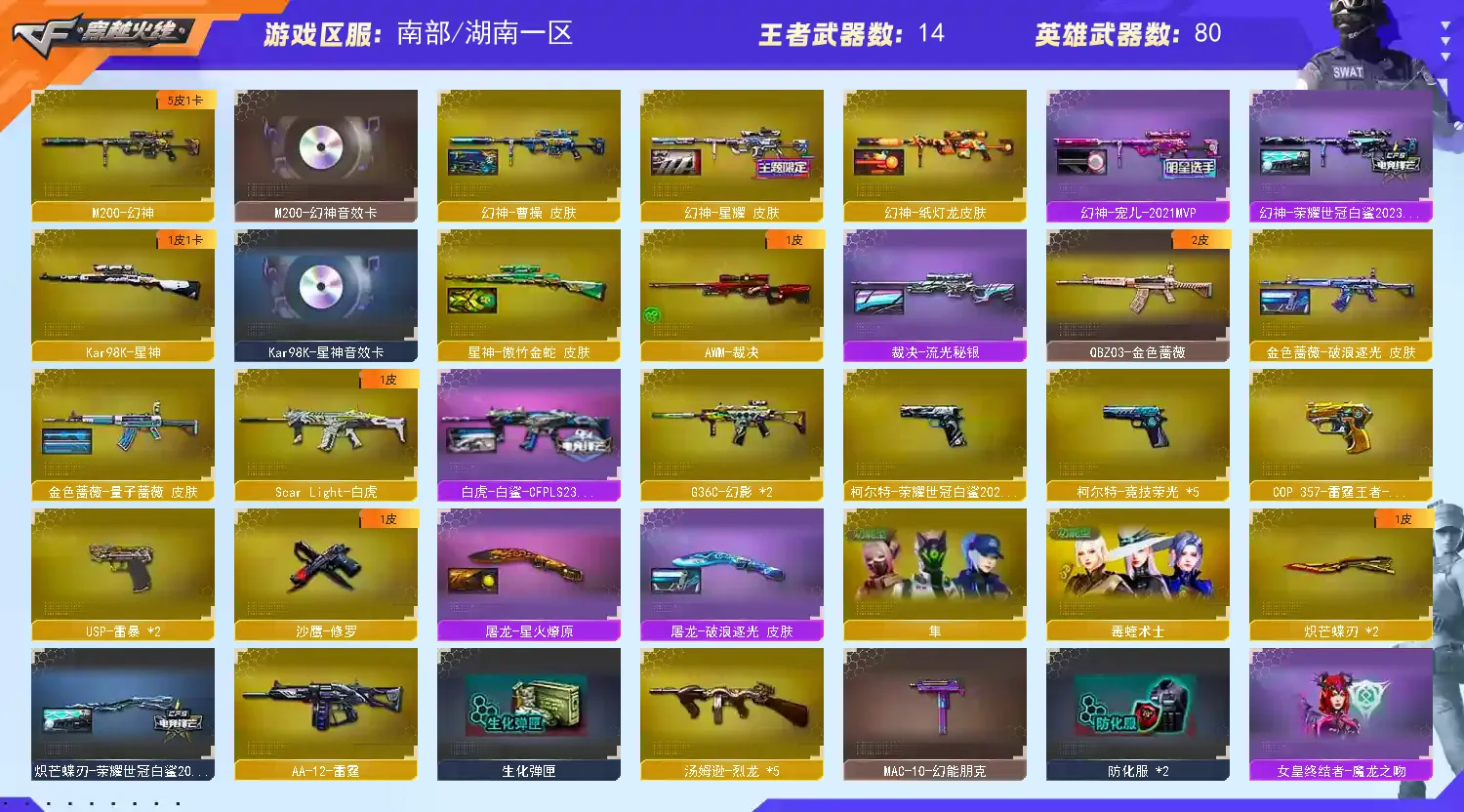 【不允许排位】✅白虎白鲨/幻神5皮新白鲨带卡/星神金蛇带卡+蔷薇2皮+裁决秘银+9质量副武器+幻影+白鲨蝴蝶刀✅
