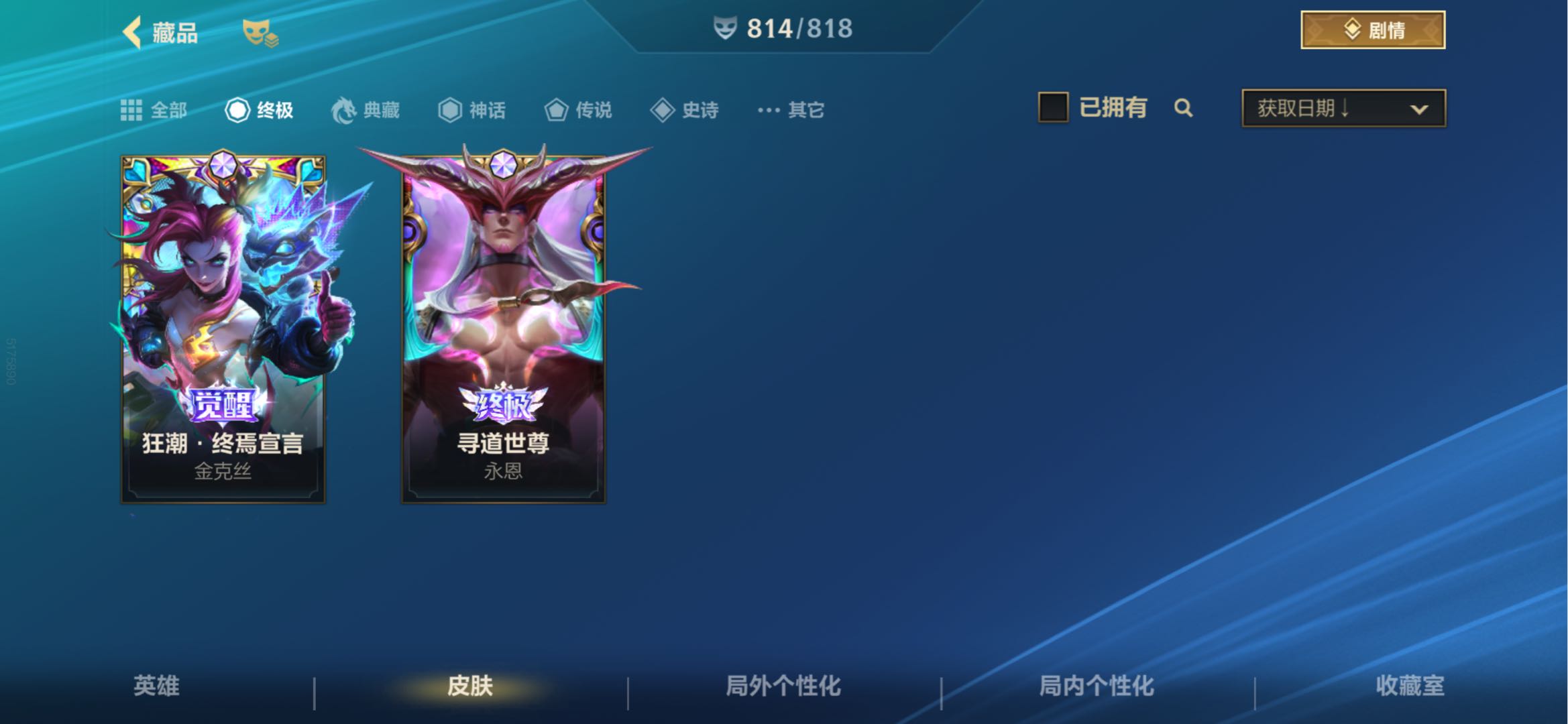 【苹果】 【魂】~推荐✨814皮肤19.6万收藏分丨满典藏终极至臻珍藏丨历史国服刀妹✨玄都永恩寻道世尊金克丝