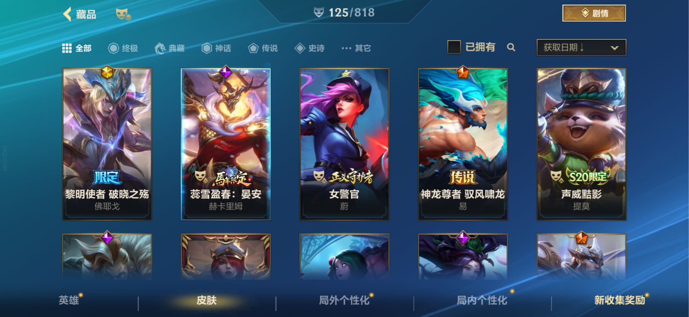 允许排位 125皮122英雄🔥剑魔年限定皮肤🔥莎弥拉限定皮肤🔥莫甘娜限定皮肤
