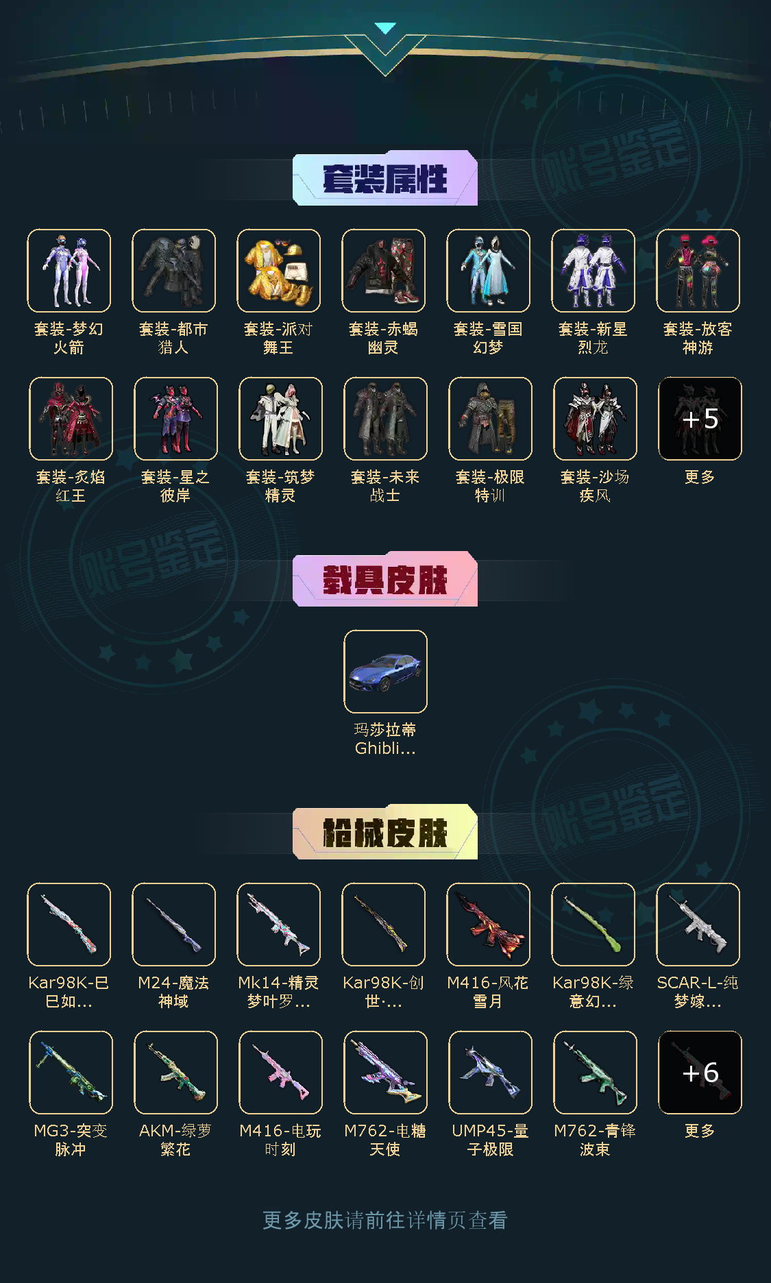 【粉色枪皮】SKS-诡面斩/AKM-绿萝繁花/SCAR-L-纯梦嫁纱/SCAR-L-锦绣绵绵/M416-电玩时刻/M416-风花雪月/M762-电糖天使/M762-青锋波束/Kar98K-巳巳如意/Kar98K-绿意幻情/Kar98K-创世·救赎/M24-魔法神域/AMR-智耀战神/Mk14-精灵梦叶罗丽/UMP45-量子极限/DP-28-暗夜鎏金/MG3-突变脉冲