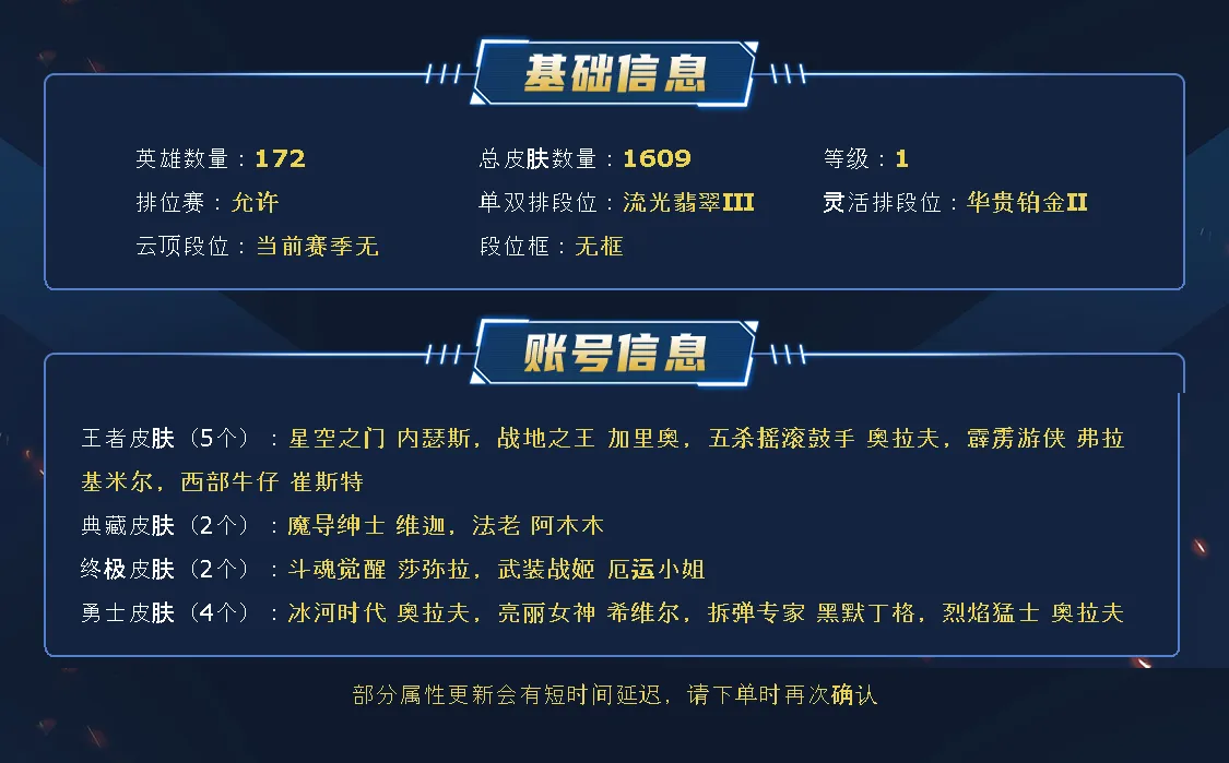 ~~喜欢记得收藏~~可排位~~1417皮全英雄~~租之前尽量查一下游戏ID,确保段位是您需要的,避免浪费您的时间~~请勿挂机逃跑故意送人头,谢谢合作,谢谢~~