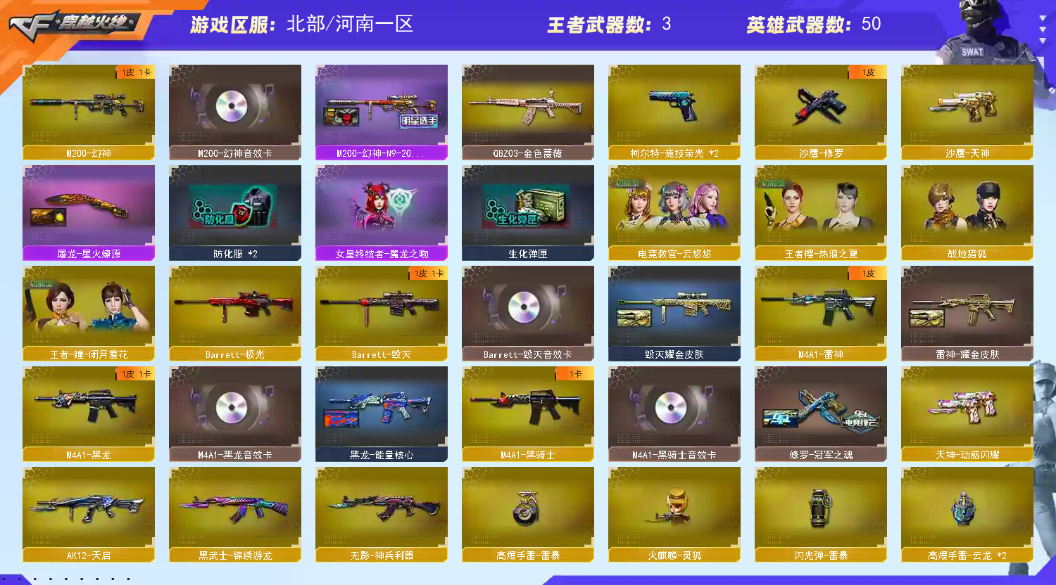 幻神三件套 幻神+N9-2022MVP+音效卡 毁灭+音效卡 王者-瞳-闭月羞花 王者樱-热浪之夏 云悠悠 雷神+源计划2.0专属 黑龙+音效卡 黑骑士+音效卡 QBZ金色蔷薇 云龙扇 屠龙-动感闪耀+音效卡 炽芒蝶刃 C.A.T/金色蔷薇-空/雷神-小红/炫金雷神/炫金无影/炫金千变