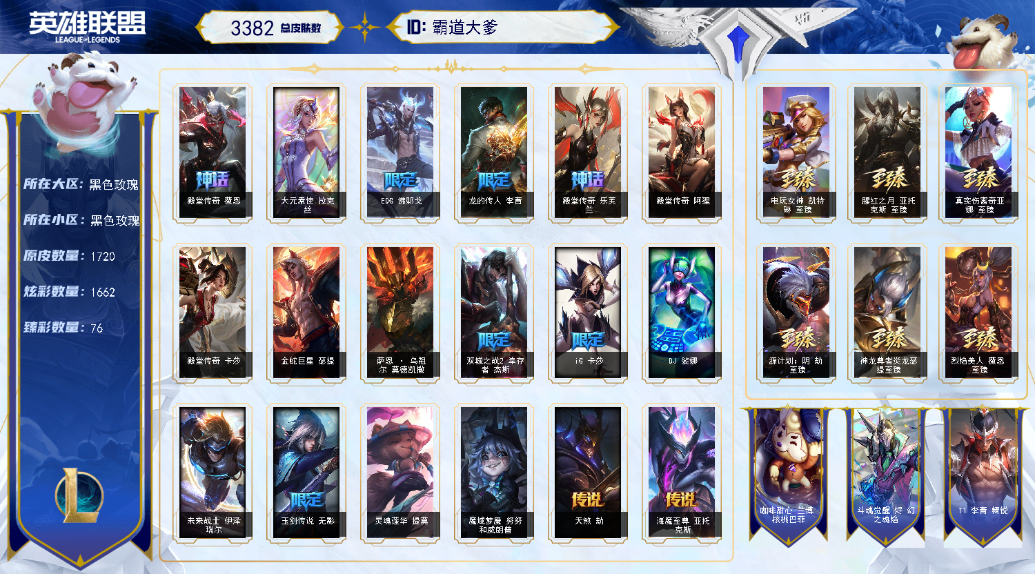 满级海克斯-清空商城2卓越2圣堂-晴天-圣堂瑟提、铁男-1712原皮-炫彩3k-黑色玫瑰