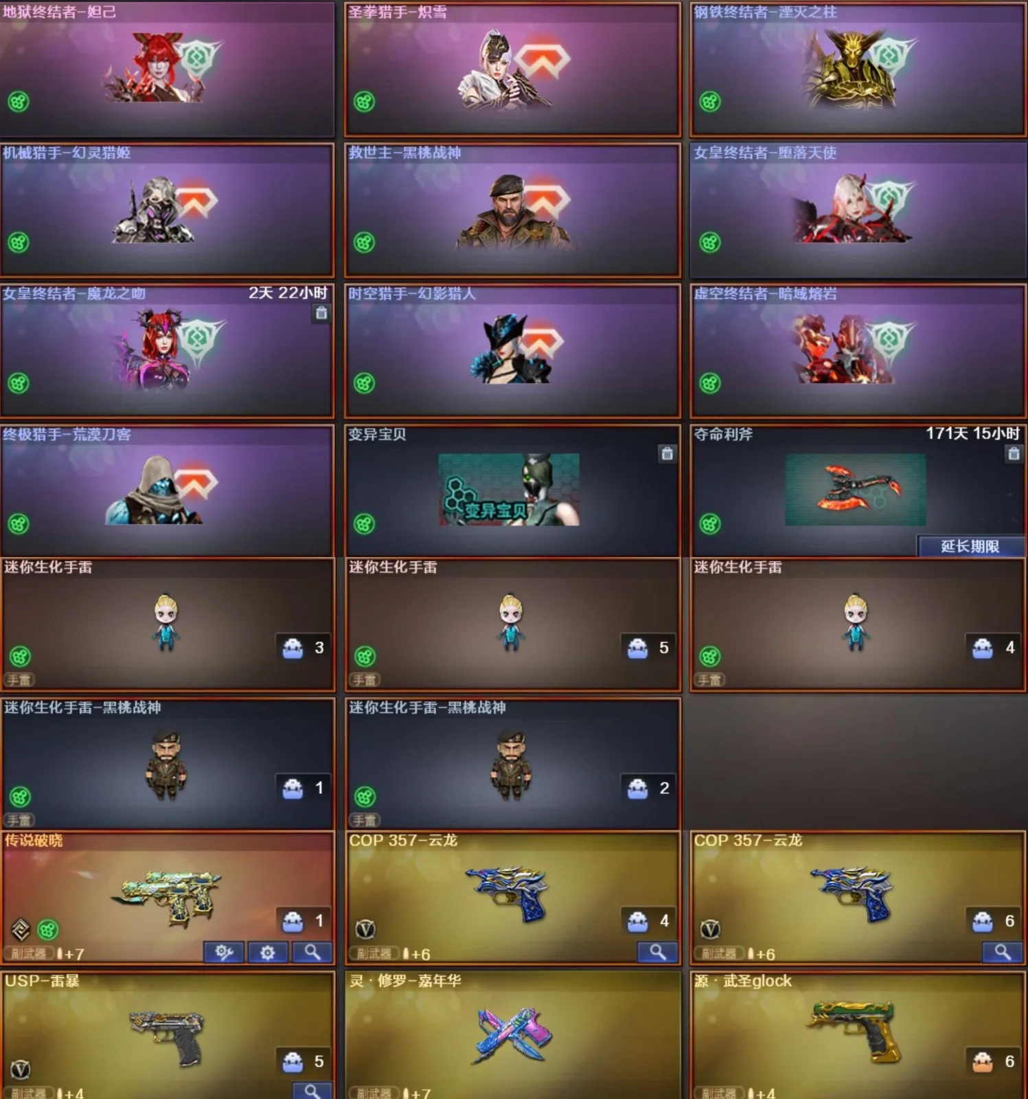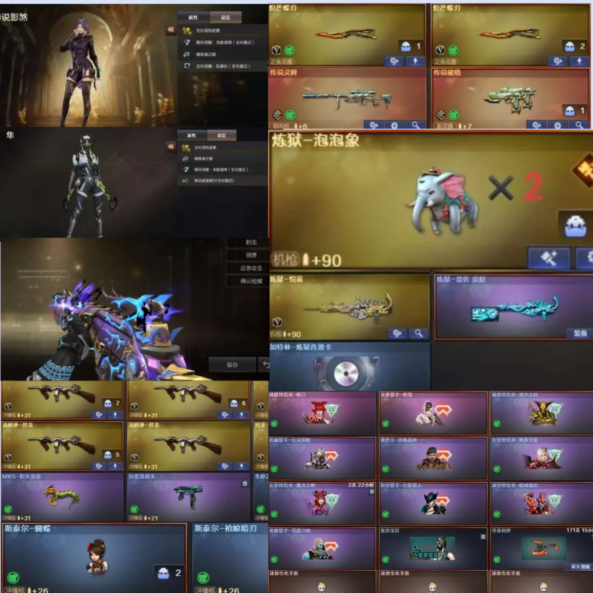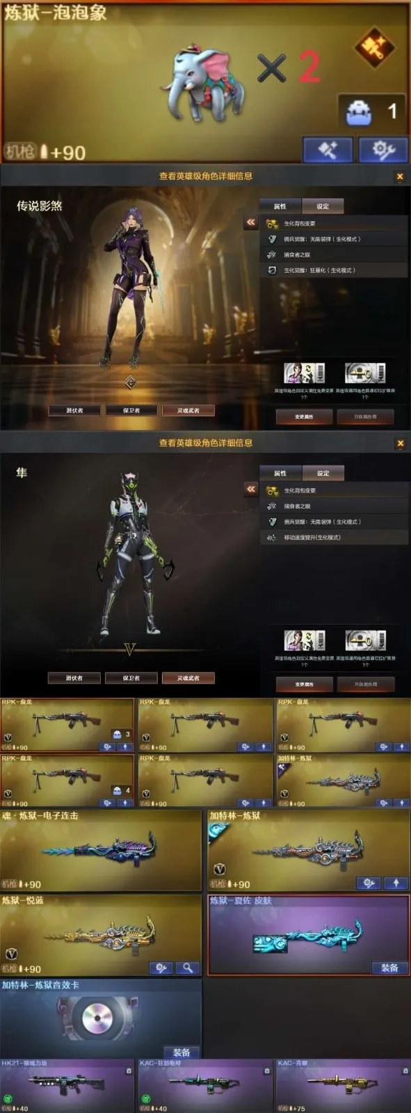 影煞&隼 双泡泡象&八面玲珑满级、双蝴蝶刀、斯泰尔蝴蝶&枪娘、满猎手皮肤、炽火炎龙&清道夫