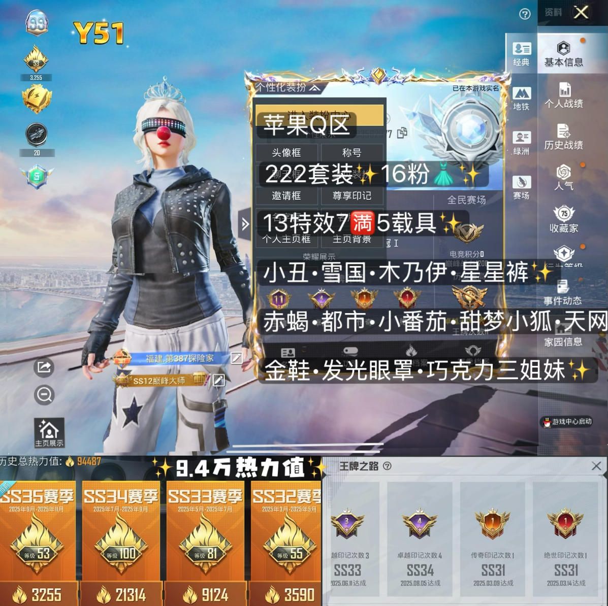 7级星梦奇缘✨木乃伊✨小丑✨雪国✨天网✨星星裤✨赤蝎金鞋都市✨甜梦小狐✨小番茄✨14粉13特效✨5车✨粉熊包✨极限特训