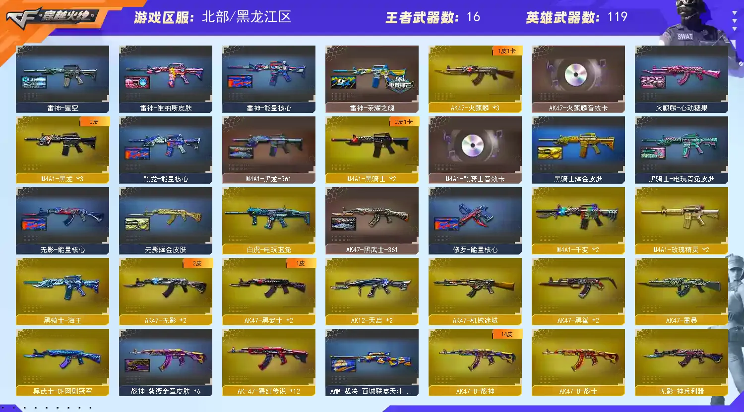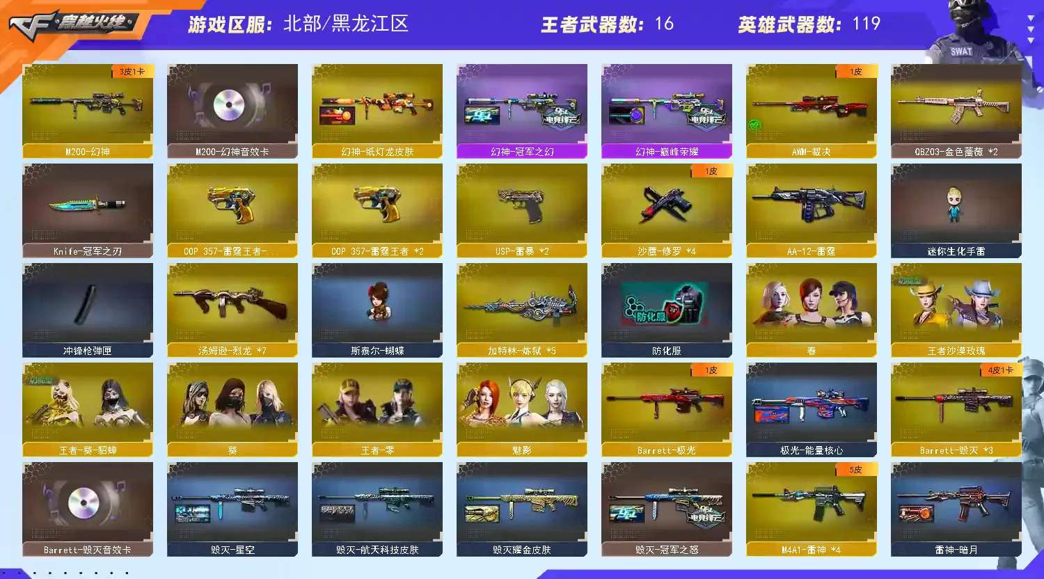 【亮点解析 幻神3皮带卡 生化高配 】【m200幻神+音效卡+冠军之幻+纸灯龙+巅峰荣耀+冠军之刃】【6烈龙 5炼狱 斯太尔蝴蝶 】【白虎电玩】【qbz金色蔷薇】【hk417朱雀】【火麒麟+卡】【黑龙】【雷神+荣耀之魄】【黑骑士+卡】【毁灭+卡+冠军之怒】【极光】【裁决】【武器:天启 黑武士 雷暴 王者之心 王者之幻 王者凤吟 海王 王者霜心 白虎电玩 】【7手枪:修罗*4 雷暴*2 天神 雷霆王者 】【10刀具:屠龙*2 龙啸*2 擎天*3 群里才 尼泊尔雷霆 王者之锋 斩神刀雷暴】【8雷套:雷霆雷 雷暴雷*7】【小人枪:雷神精英刀锋 火麒麟灵狐 星神炽天使】【音效卡:毁灭音效卡 黑骑士音效卡 幻神音效卡 火麒麟音效卡 】【四防角色:王者葵貂蝉 王者沙漠玫瑰 职业经理 】