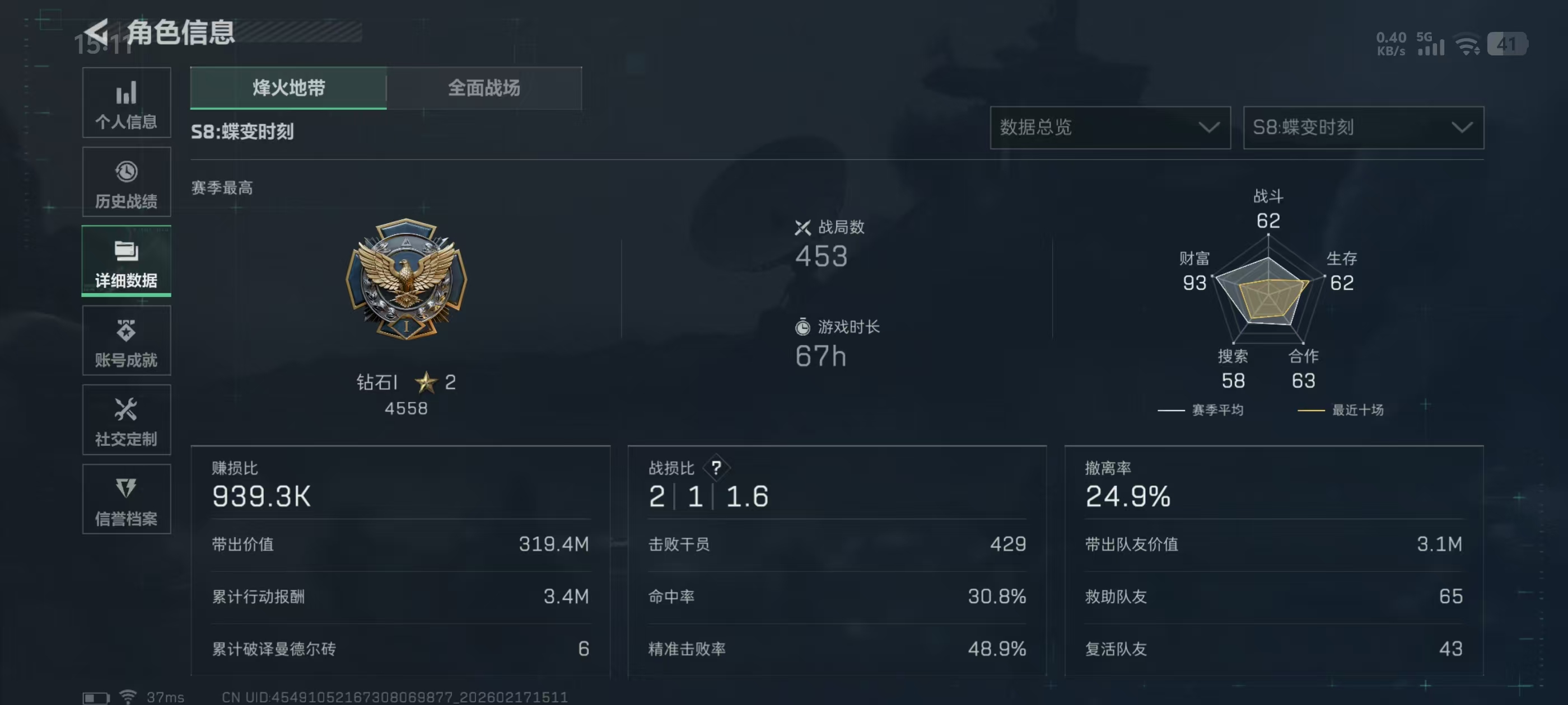 - 烽火地带段位: 钻石