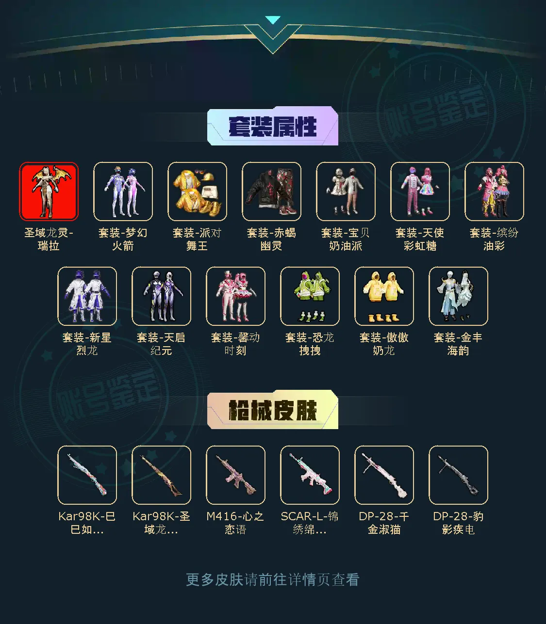 11粉,0载具,6特效枪,224套装,19王牌印记 M416-心之恋语 有身法套巡查衣等热门皮肤