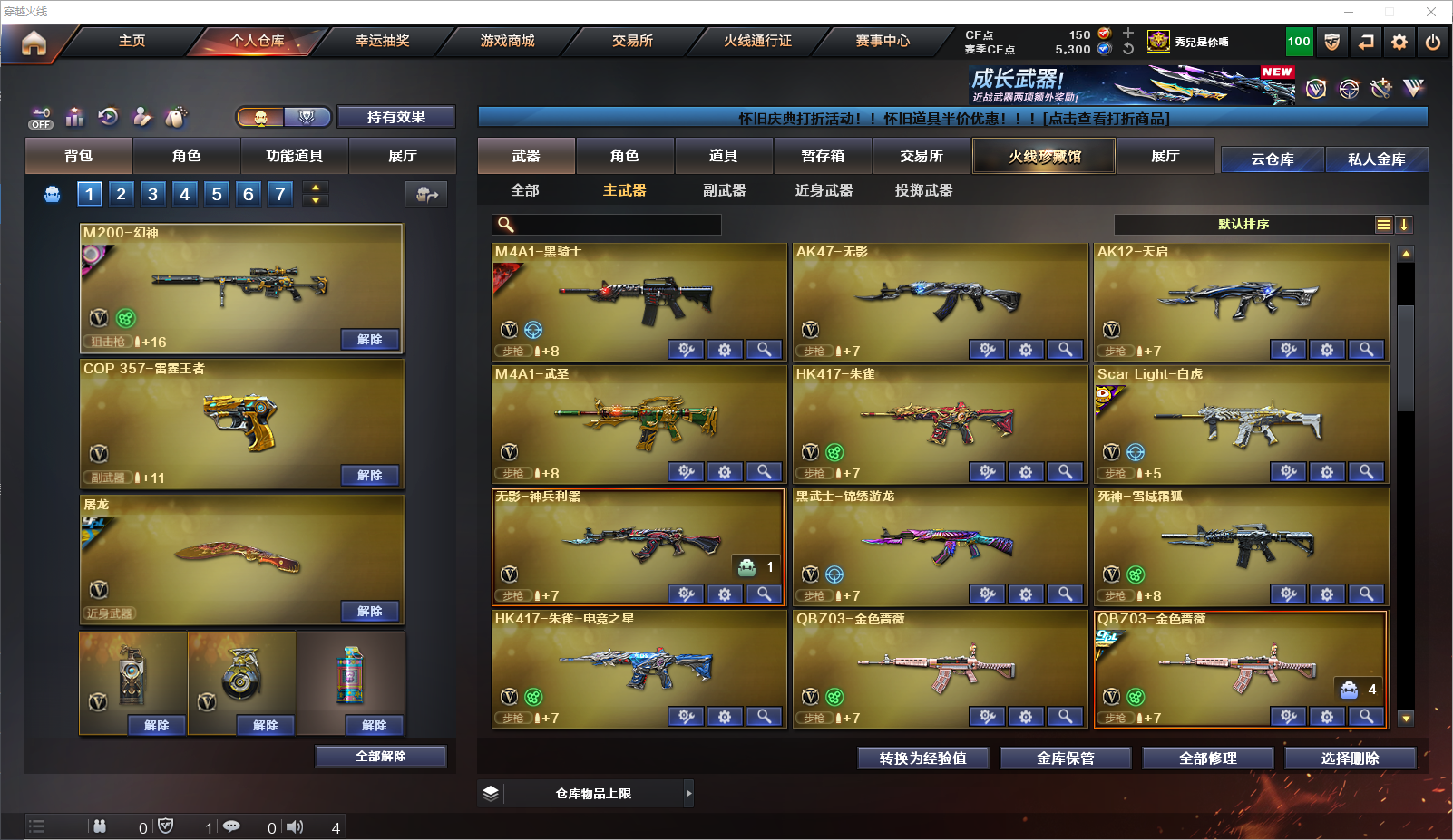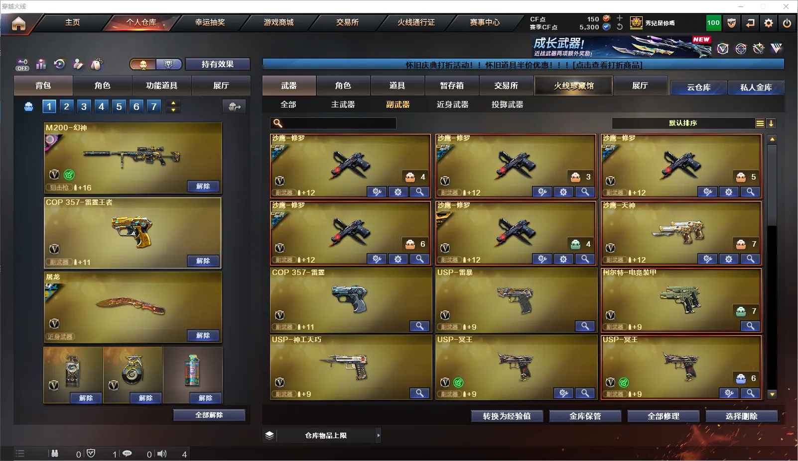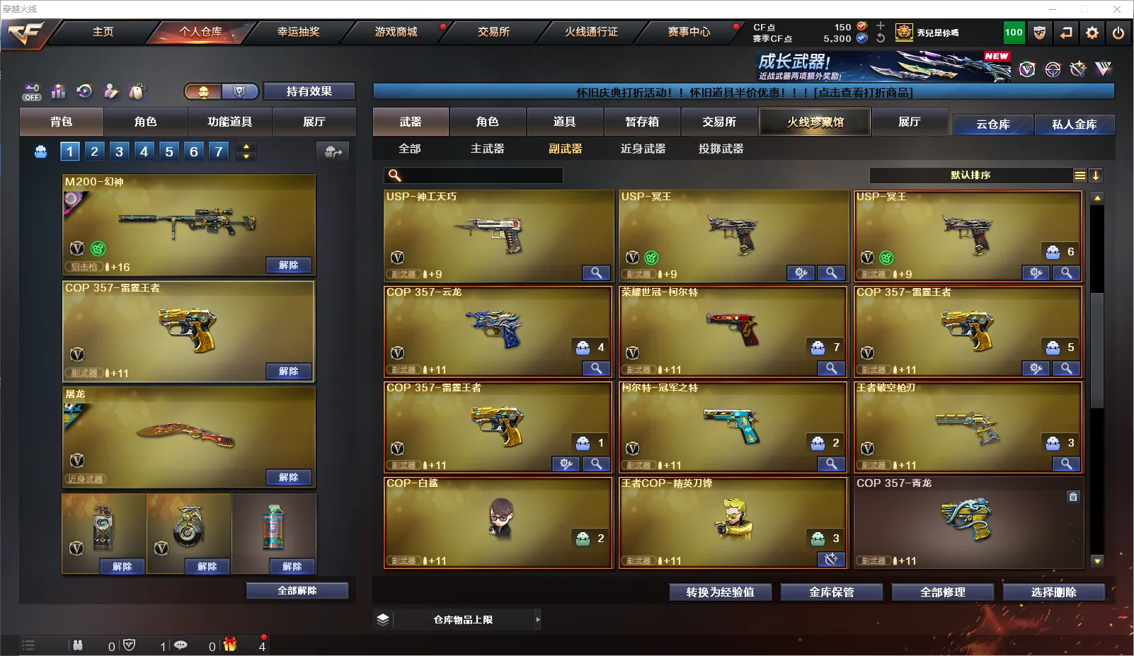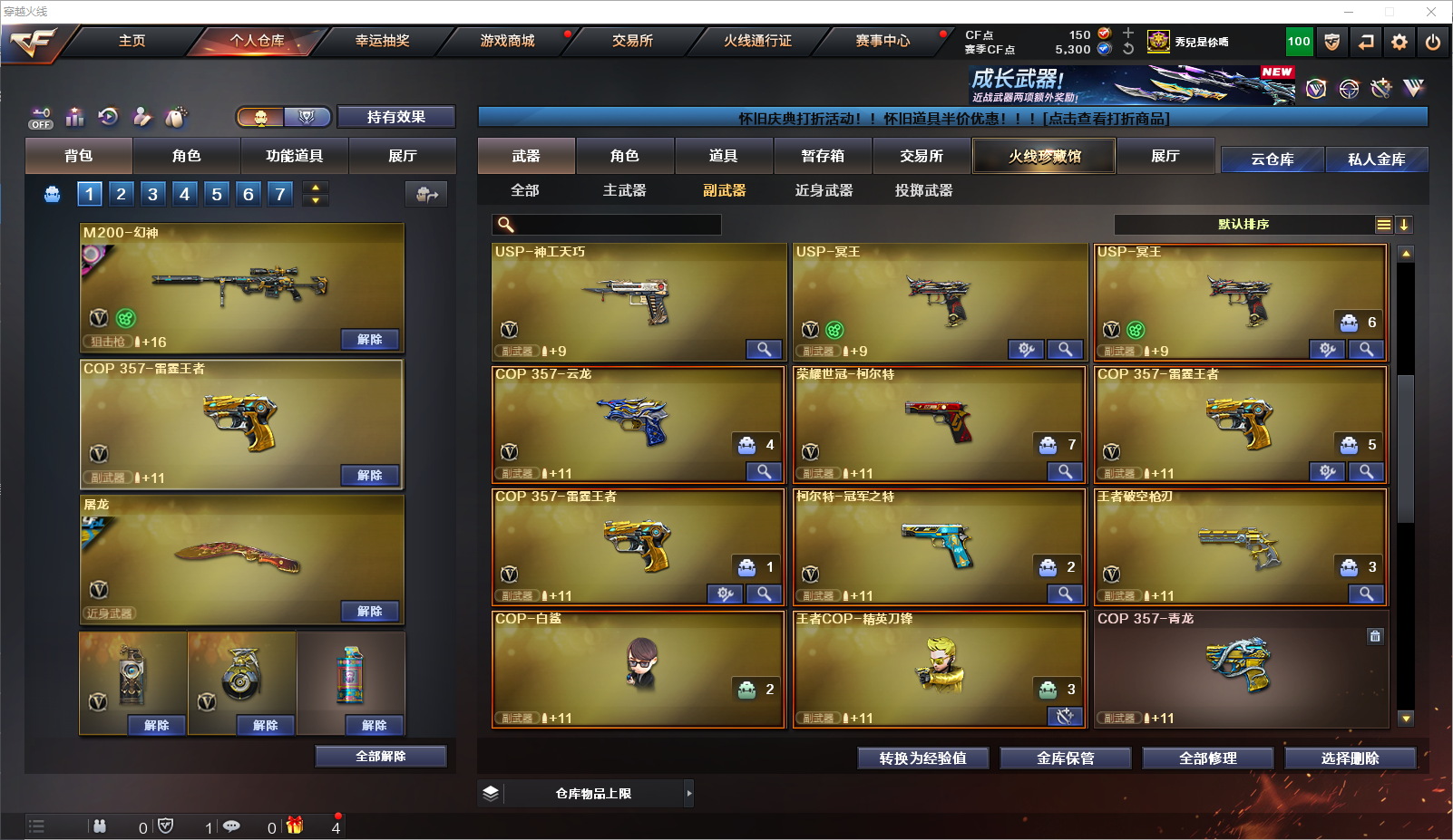 极品爆破生化号:传说灵眸、传说幽瞳、金色昵称字体、王者幻神、宠儿AG、冠军AG皮肤、3幻神双音效卡,王者破空枪刃(觉醒)、双usp冥王、双王者雷霆COP(觉醒,可配15发)、满配副武器,冠军之特、冠军之薇,6烈6盘双斯太尔小人枪,星神、裁决、QBZ金色蔷薇全部三件套,雷暴usp、王者猛虎、猫猫COP、白虎带虎牙皮肤、朱雀鹰隼晴雅等等。G36C幻影