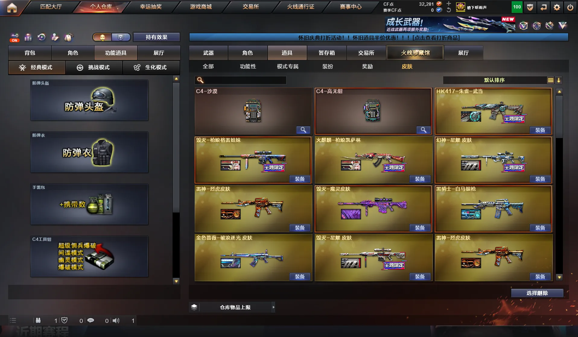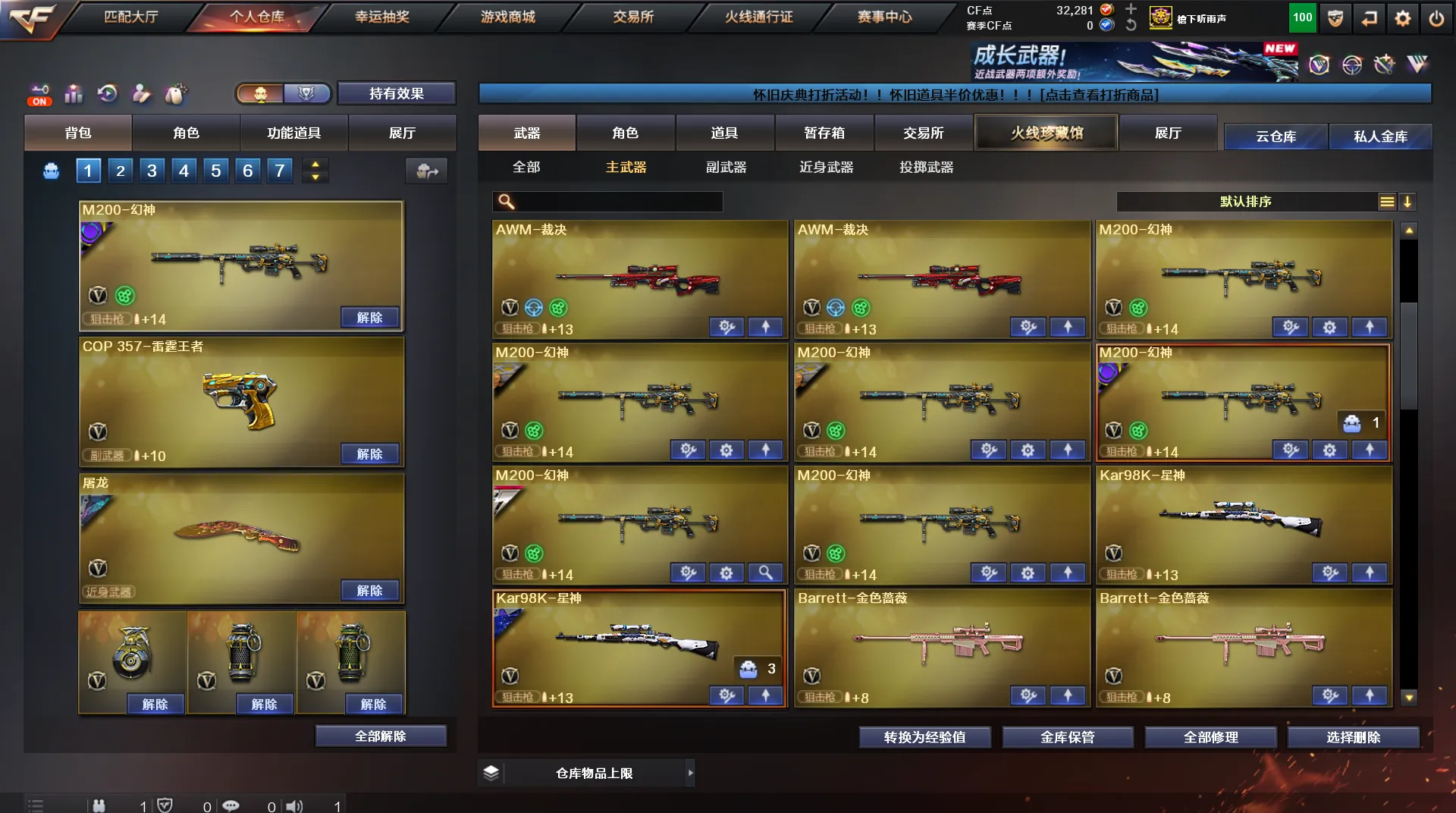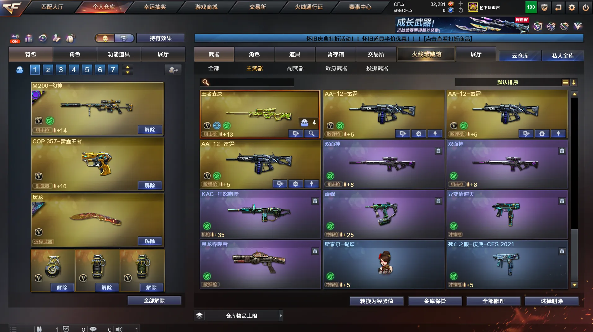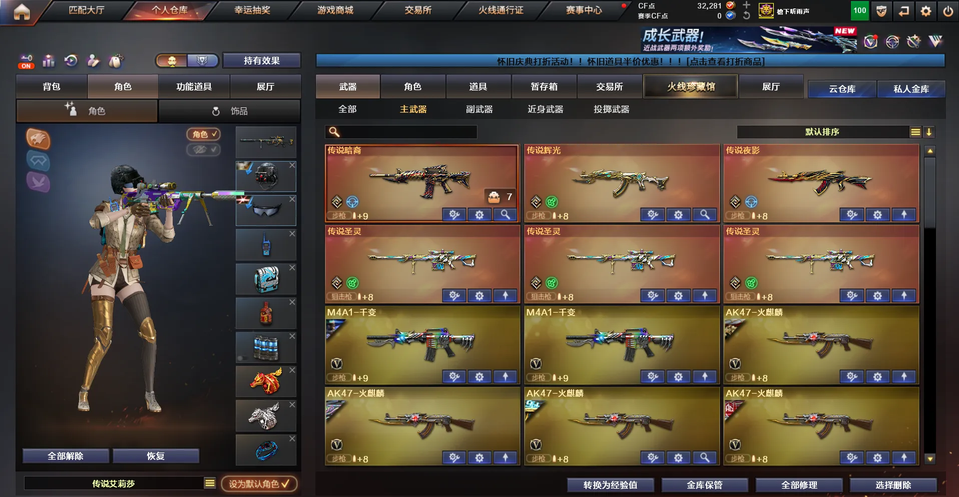 南部天花板♥300V♥7传说♥6幻神♥星神三件套♥白虎三件套♥蔷薇三件套♥死亡蝴蝶毒蜂♥手枪齐♥装备多皮肤多