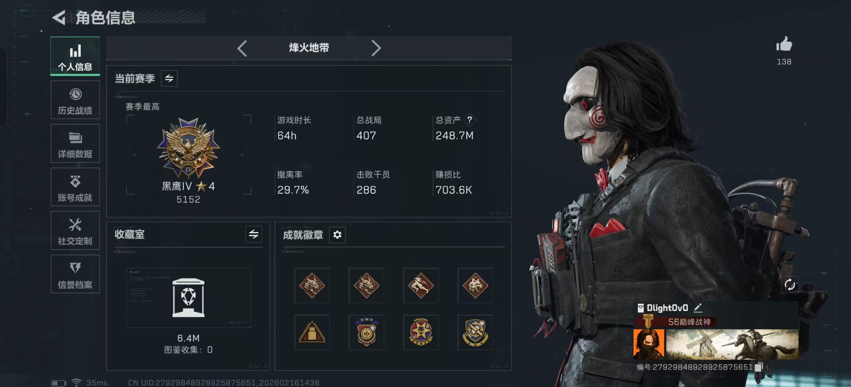 - 烽火地带段位: 黑鹰