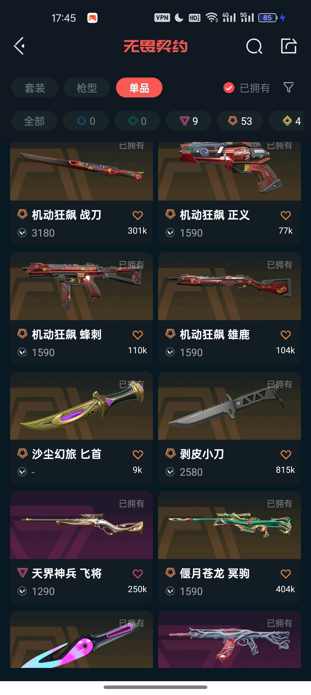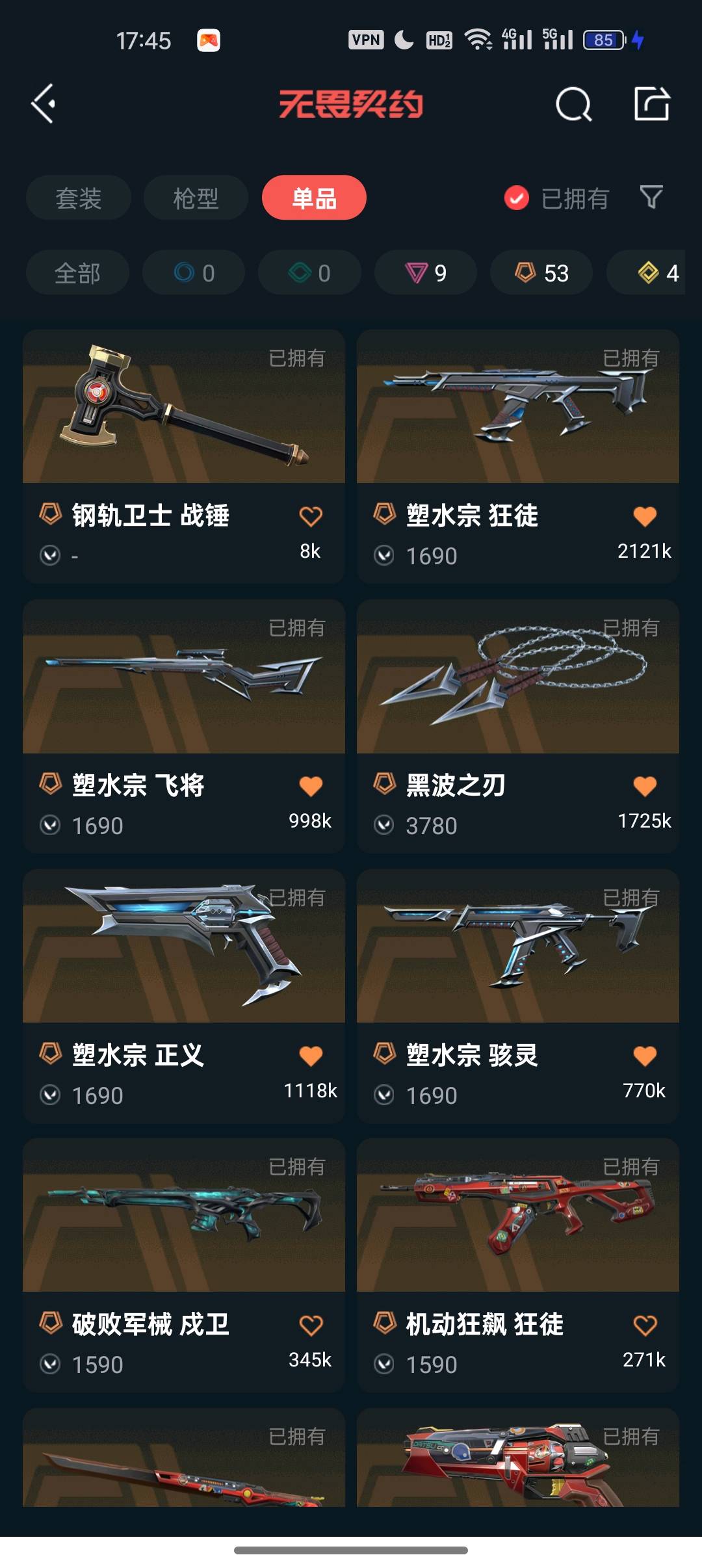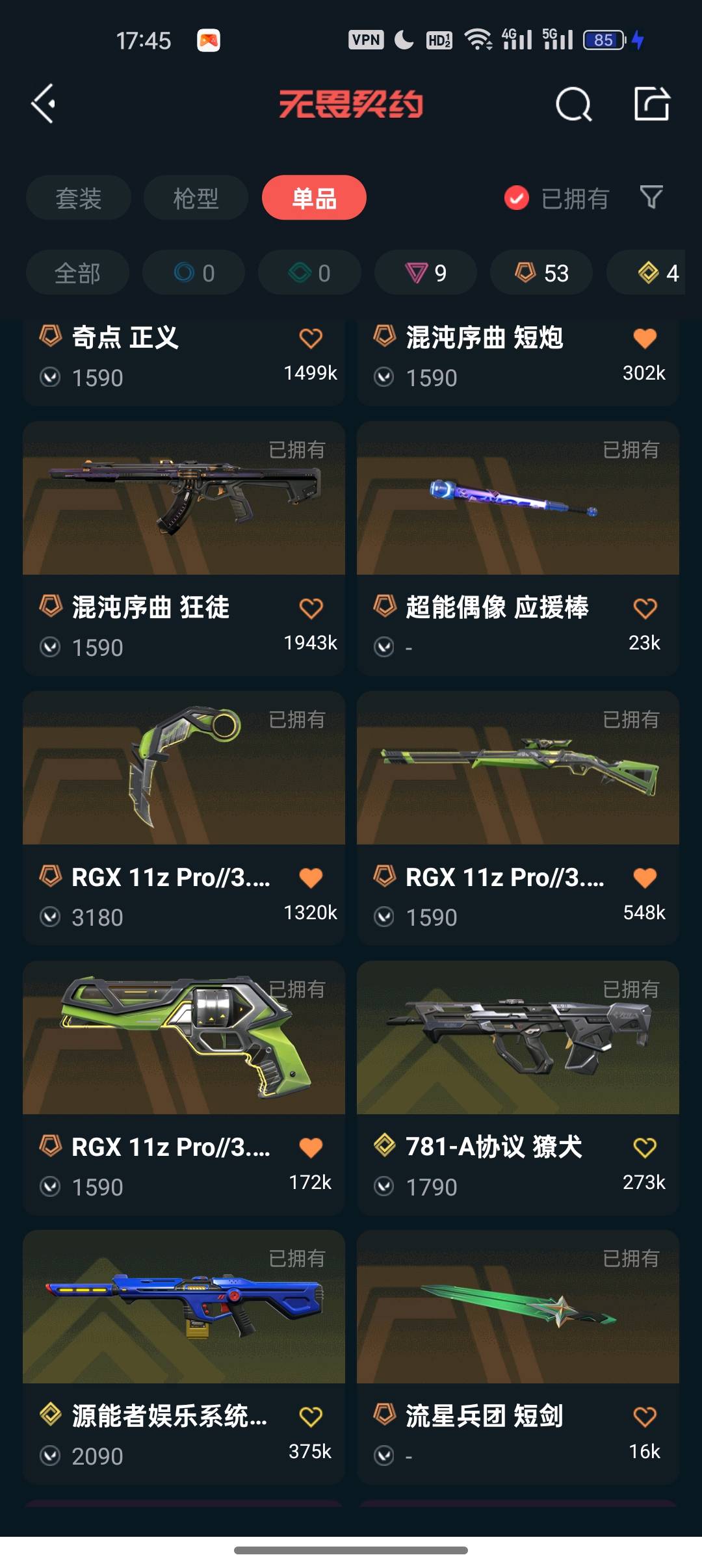 10w库存|21 25冠军套|VCT爪|塑水套|显卡套|奇点套|噬影者套|假面套|机动狂飙套