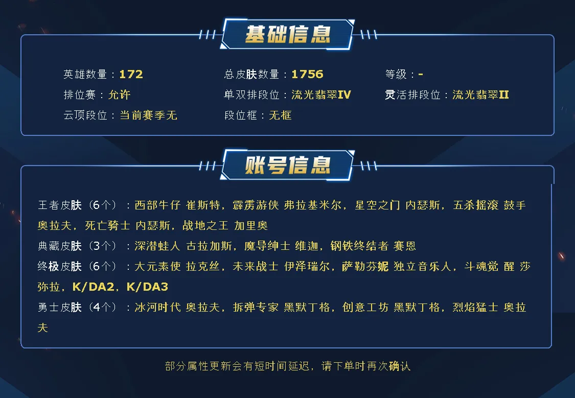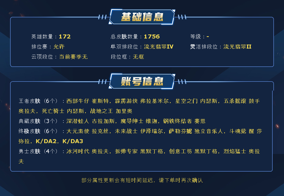 ~~喜欢记得收藏~~可排位~~1800皮全英雄~~租之前尽量查一下游戏ID,确保段位是您需要的,避免浪费您的时间~~请勿挂机逃跑故意送人头,谢谢合作,谢谢~~