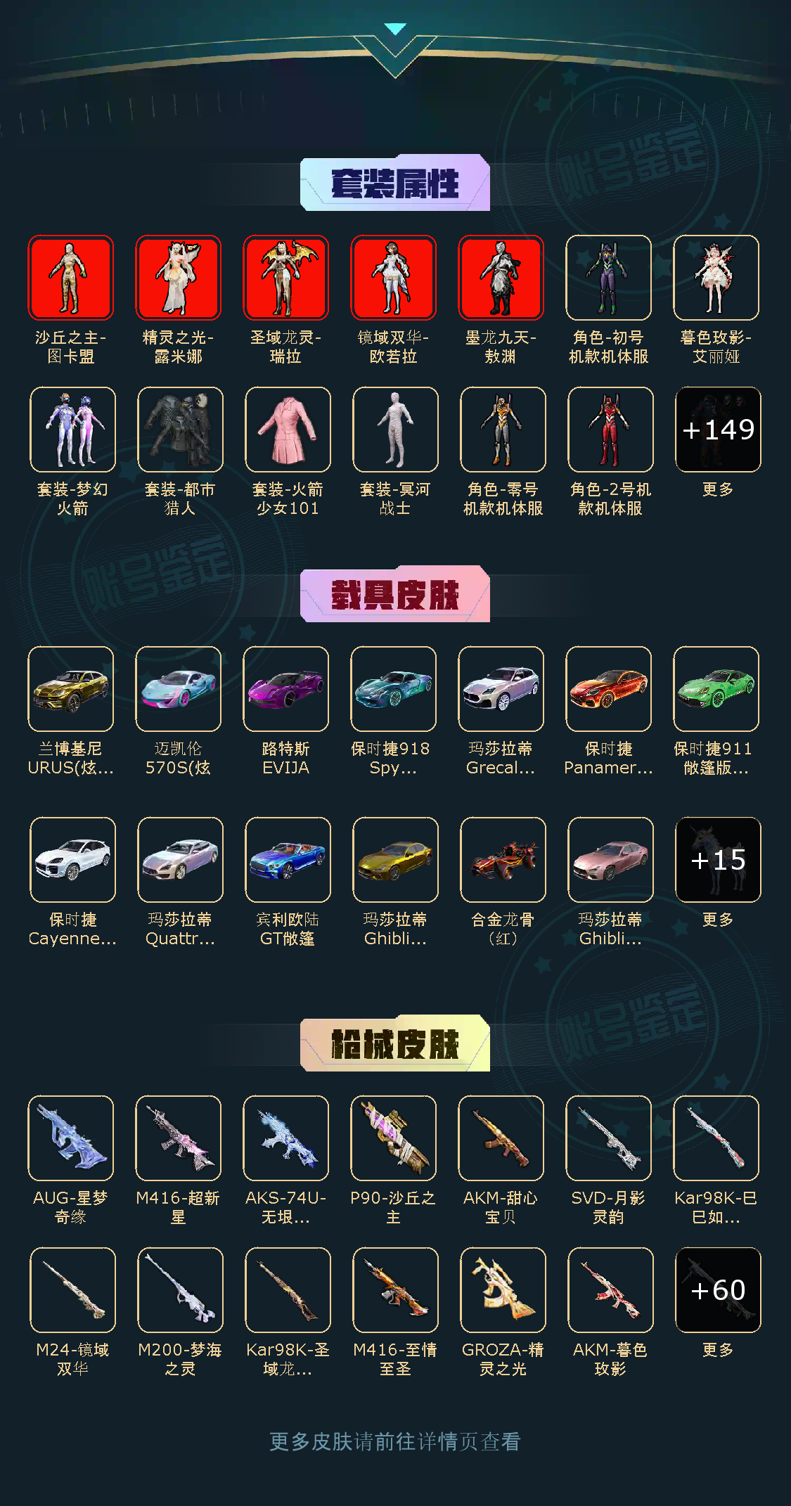 152粉,28载具,71特效枪,576套装,29王牌印记