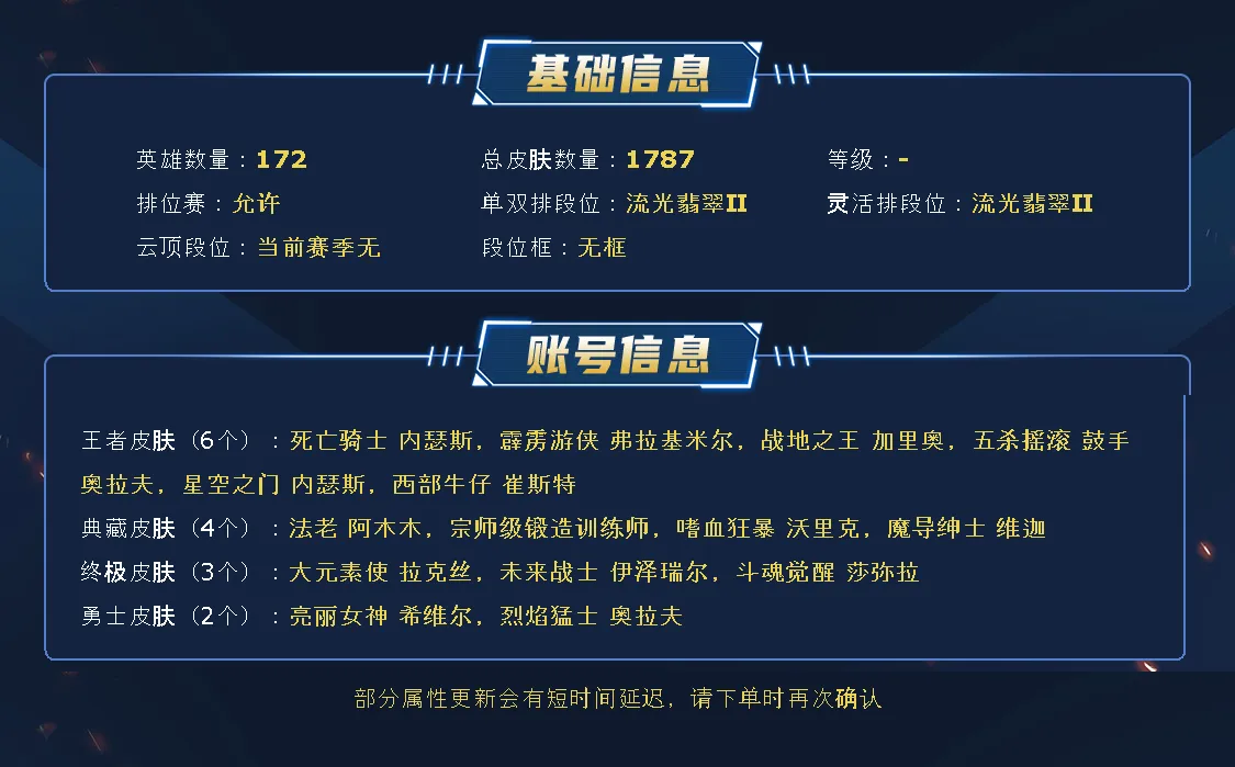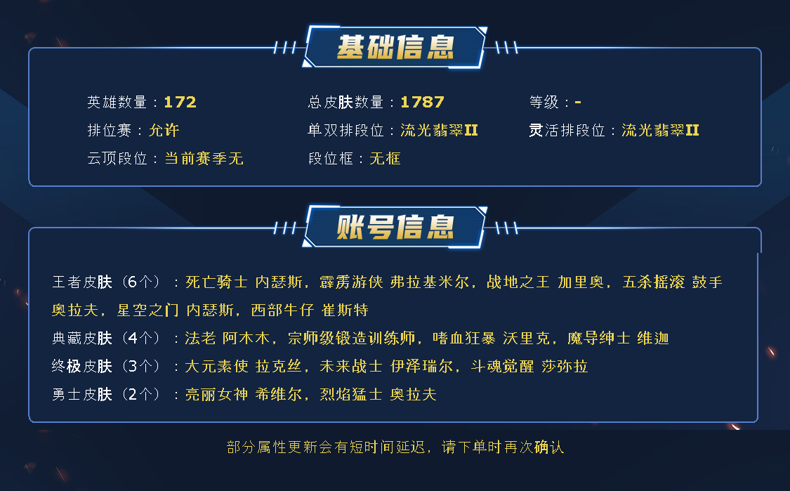 ~~喜欢记得收藏~~可排位~~1800皮全英雄~~租之前尽量查一下游戏ID,确保段位是您需要的,避免浪费您的时间~~请勿挂机逃跑故意送人头,谢谢合作,谢谢~~