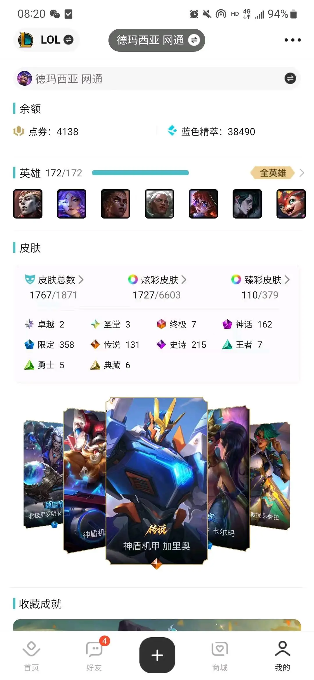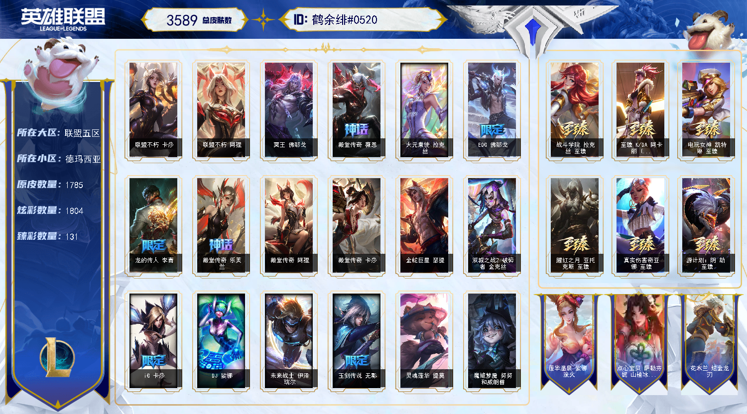 3604皮❤️162神话满英雄❤️卓越阿狸 卓越卡莎 圣堂佛耶戈 圣堂金克丝 圣堂瑟提 龙年全限定