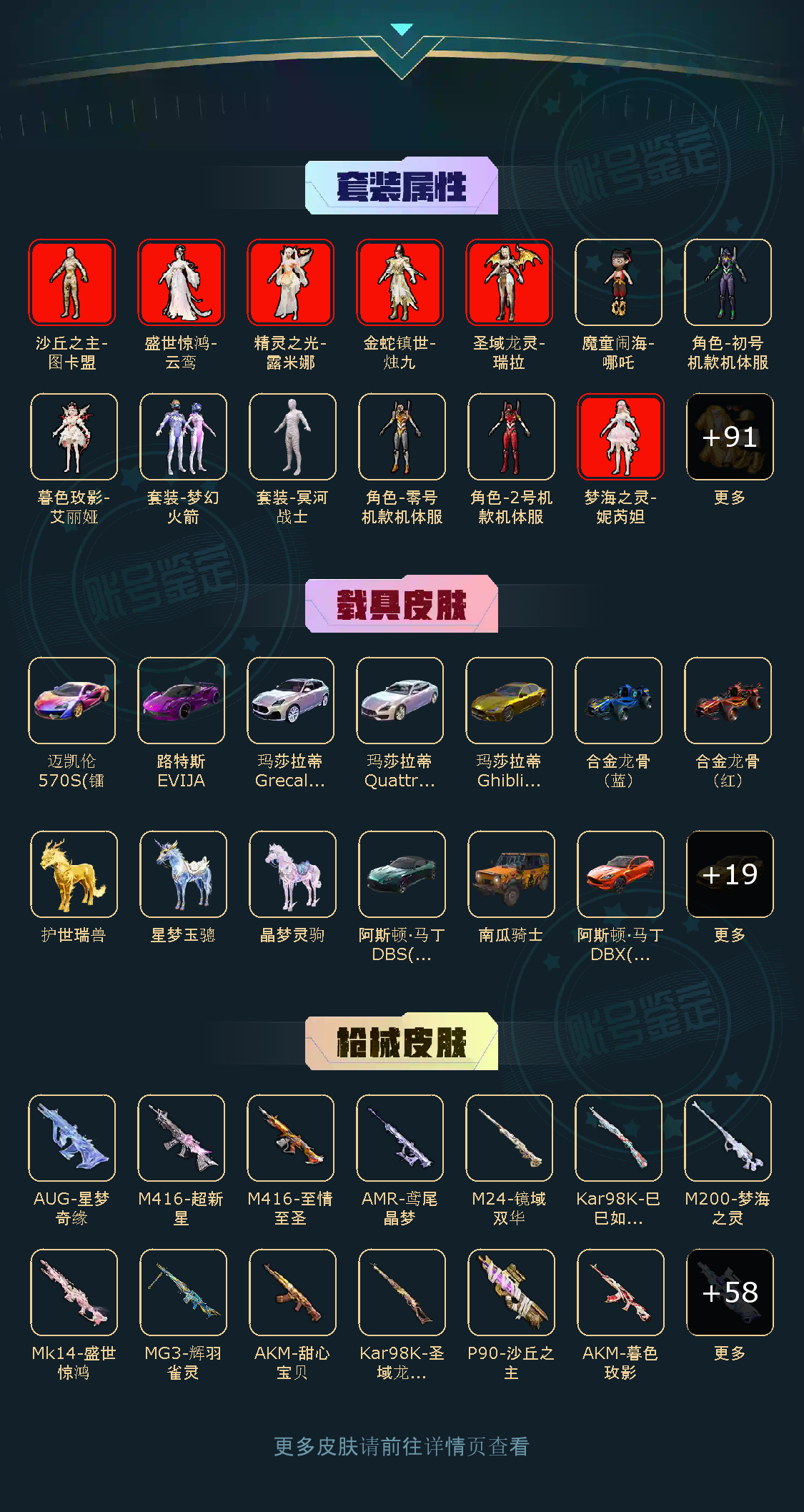 101粉,33载具,70特效枪,462套装,25王牌印记
