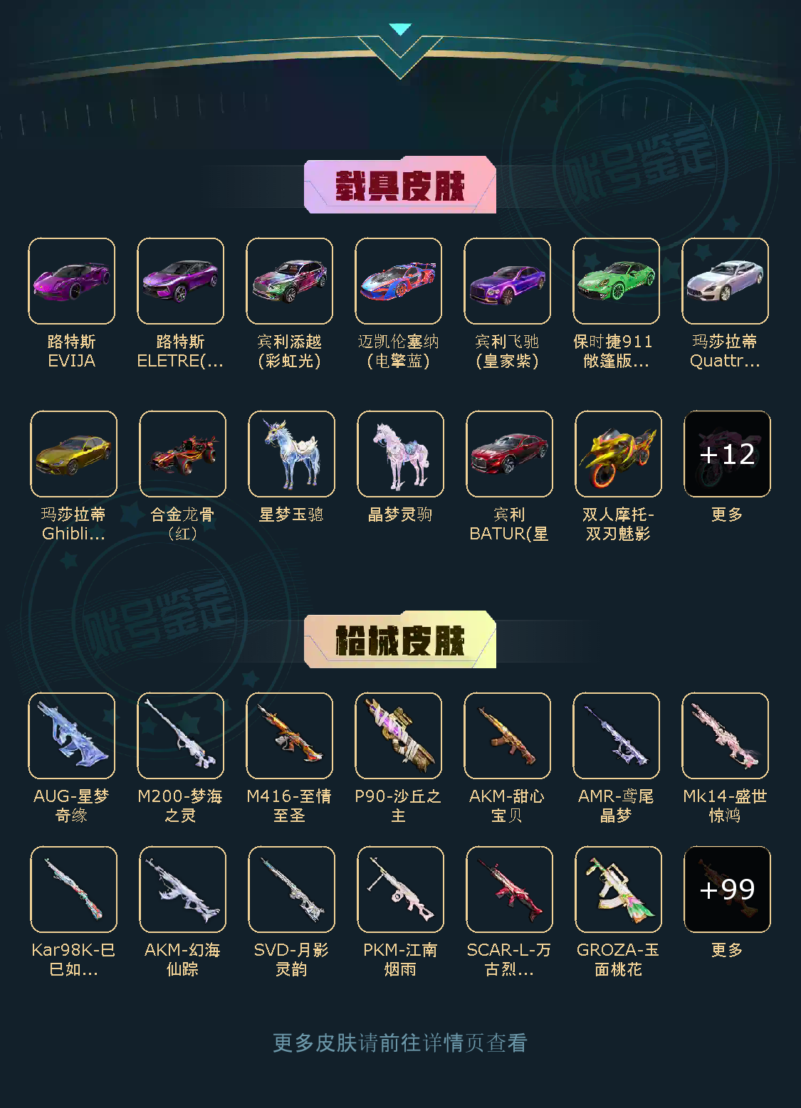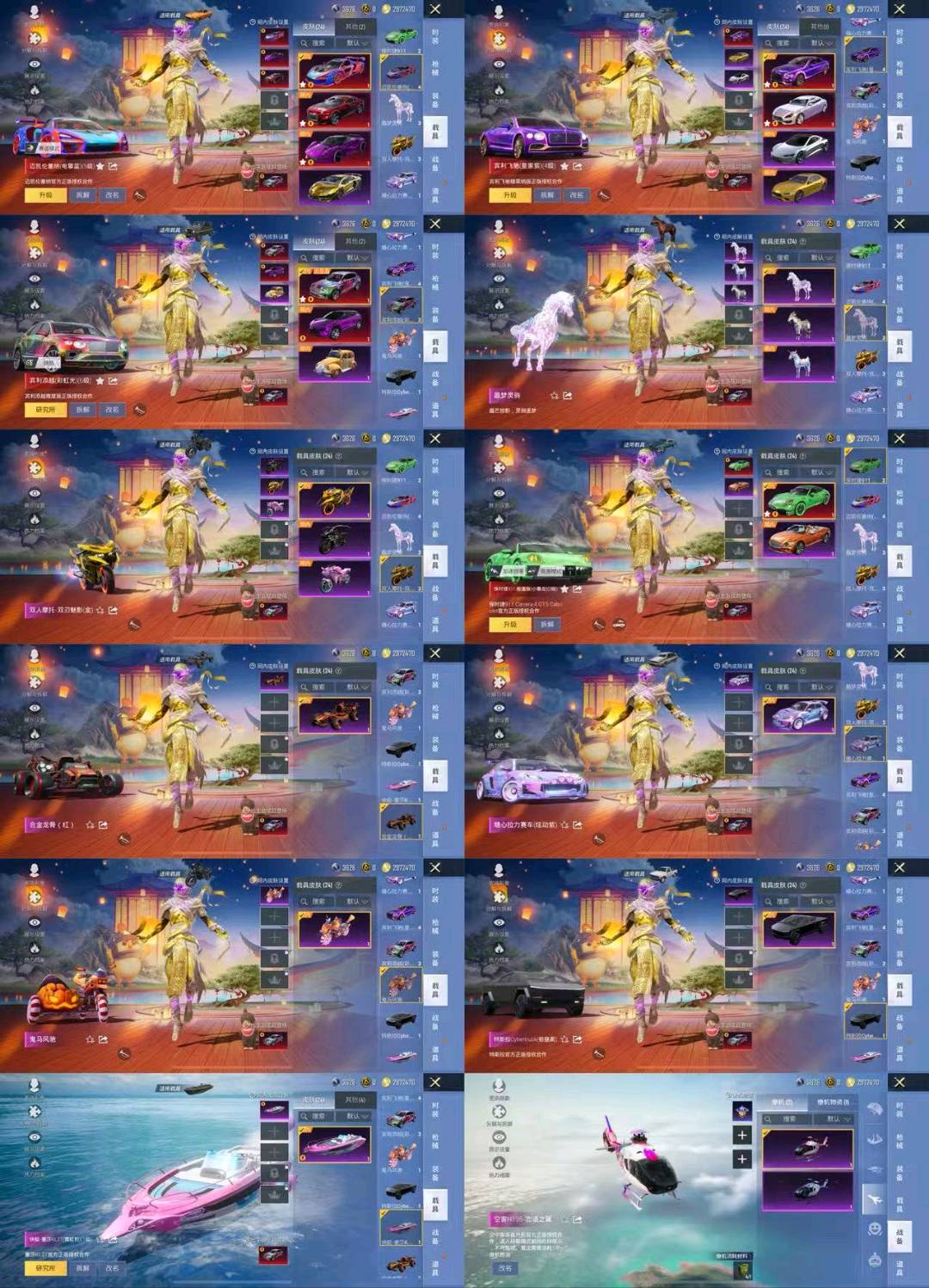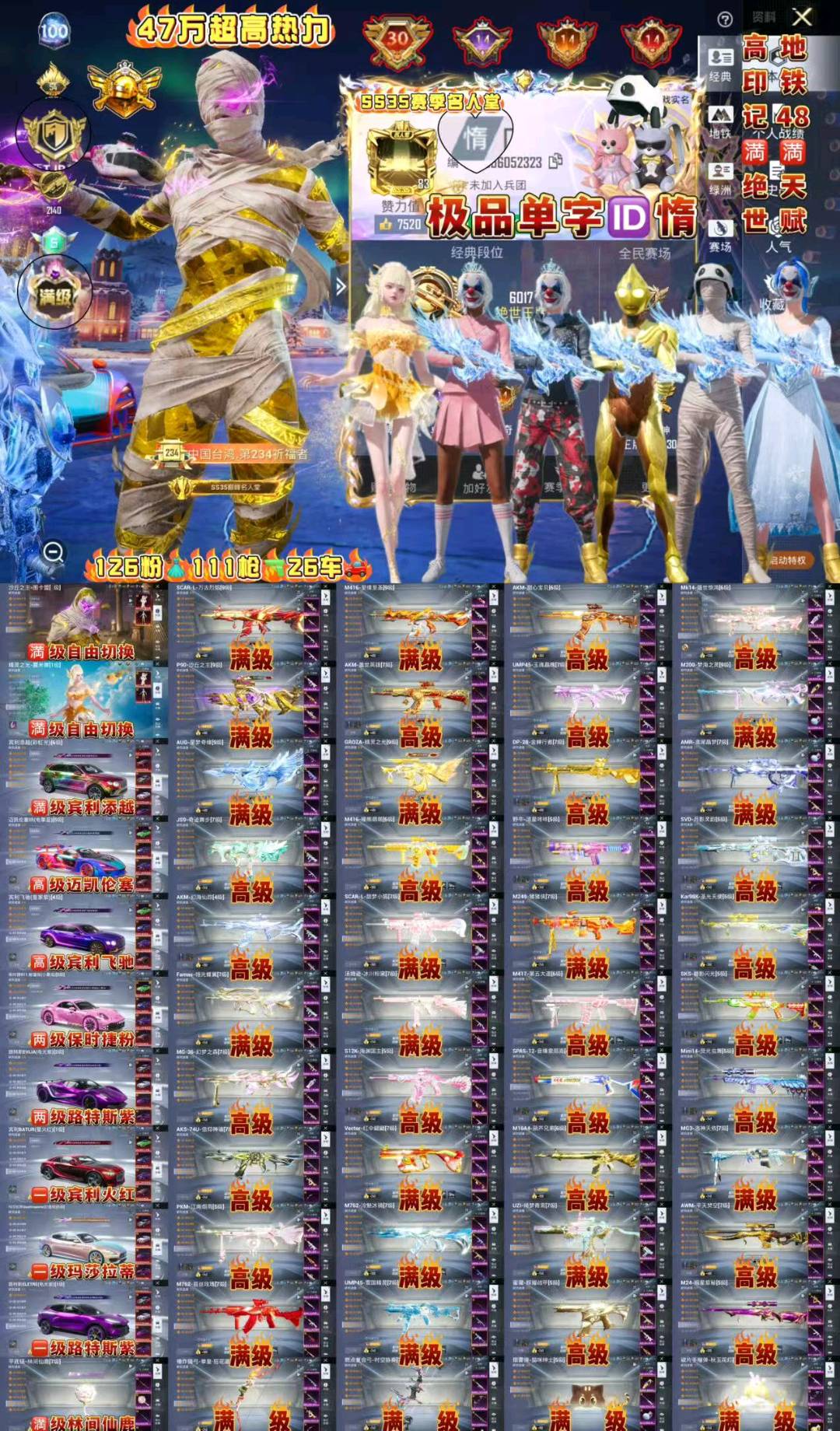 126粉,24载具,111特效枪,598套装,30王牌印记