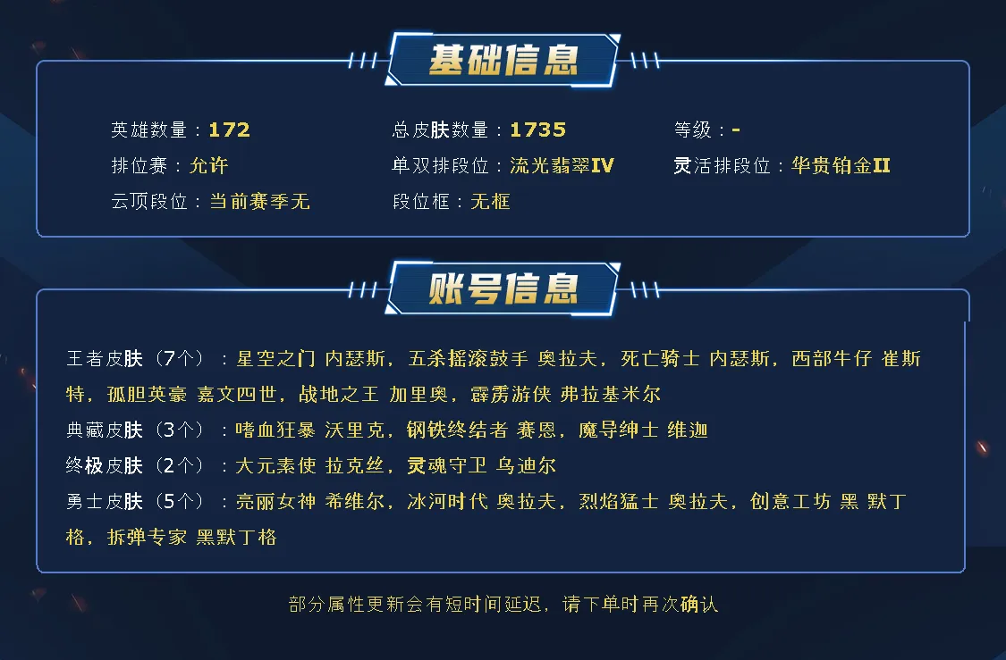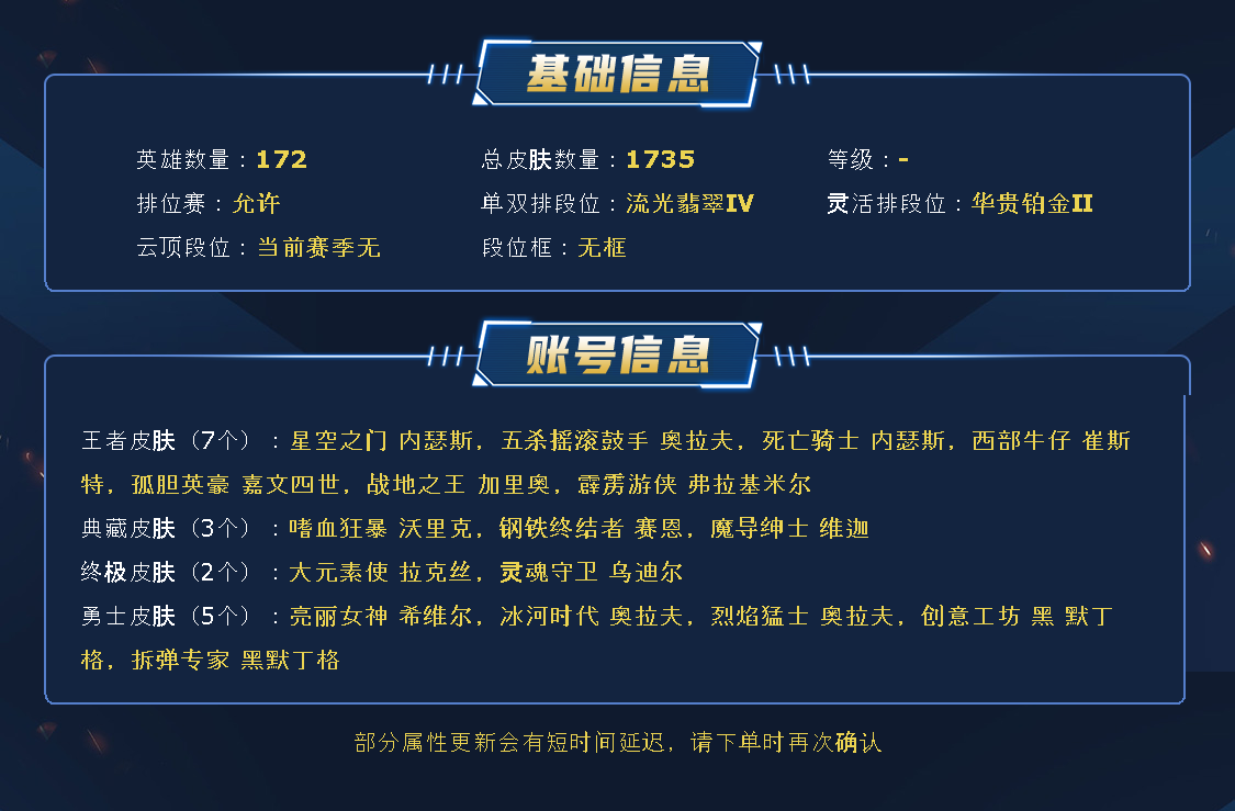 ~~喜欢记得收藏~~可排位~~1800皮全英雄~~租之前尽量查一下游戏ID,确保段位是您需要的,避免浪费您的时间~~请勿挂机逃跑故意送人头,谢谢合作,谢谢~~