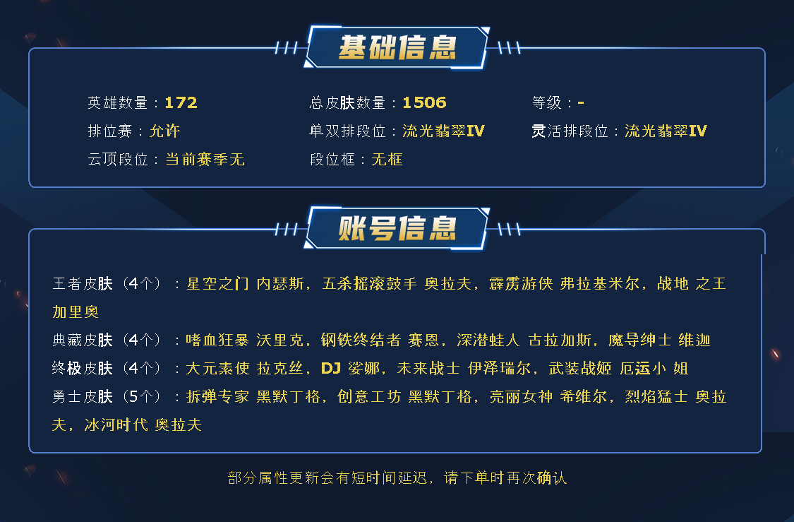 ~~喜欢记得收藏~~可排位~~1600皮全英雄~~租之前尽量查一下游戏ID,确保段位是您需要的,避免浪费您的时间~~请勿挂机逃跑故意送人头,谢谢合作,谢谢~~
