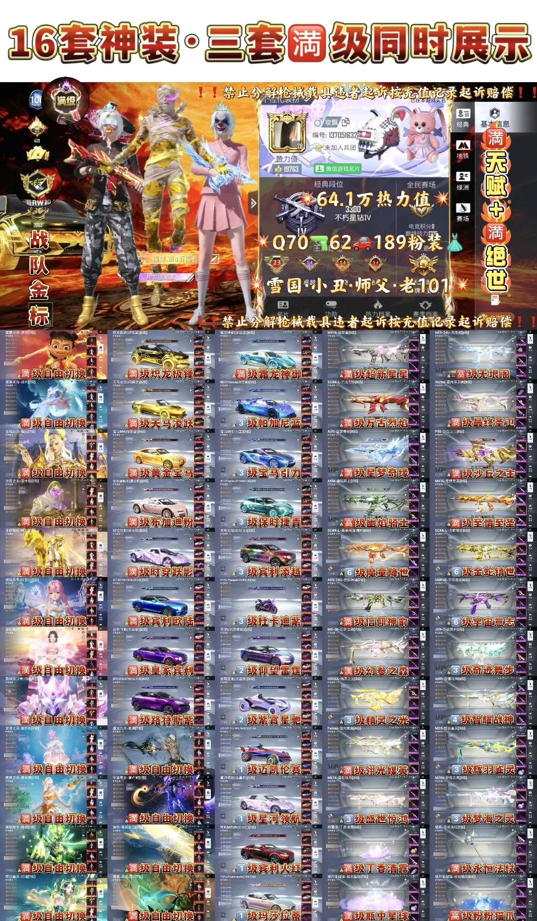 189粉,58载具,69特效枪,768套装,23王牌印记