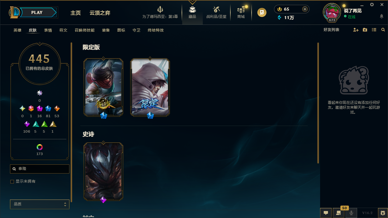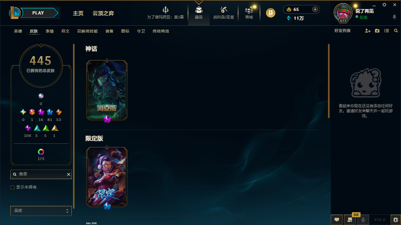- 神话皮肤数量: 16