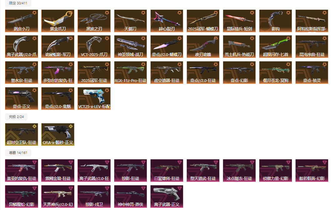 【当前段位:钻石I】全买单精品⚡VCT影勾剥皮奇点25蝴蝶紫金黑波⚡混沌盖亚25冠军超时空多弥尔紫金显卡塑水ak侦查幻影