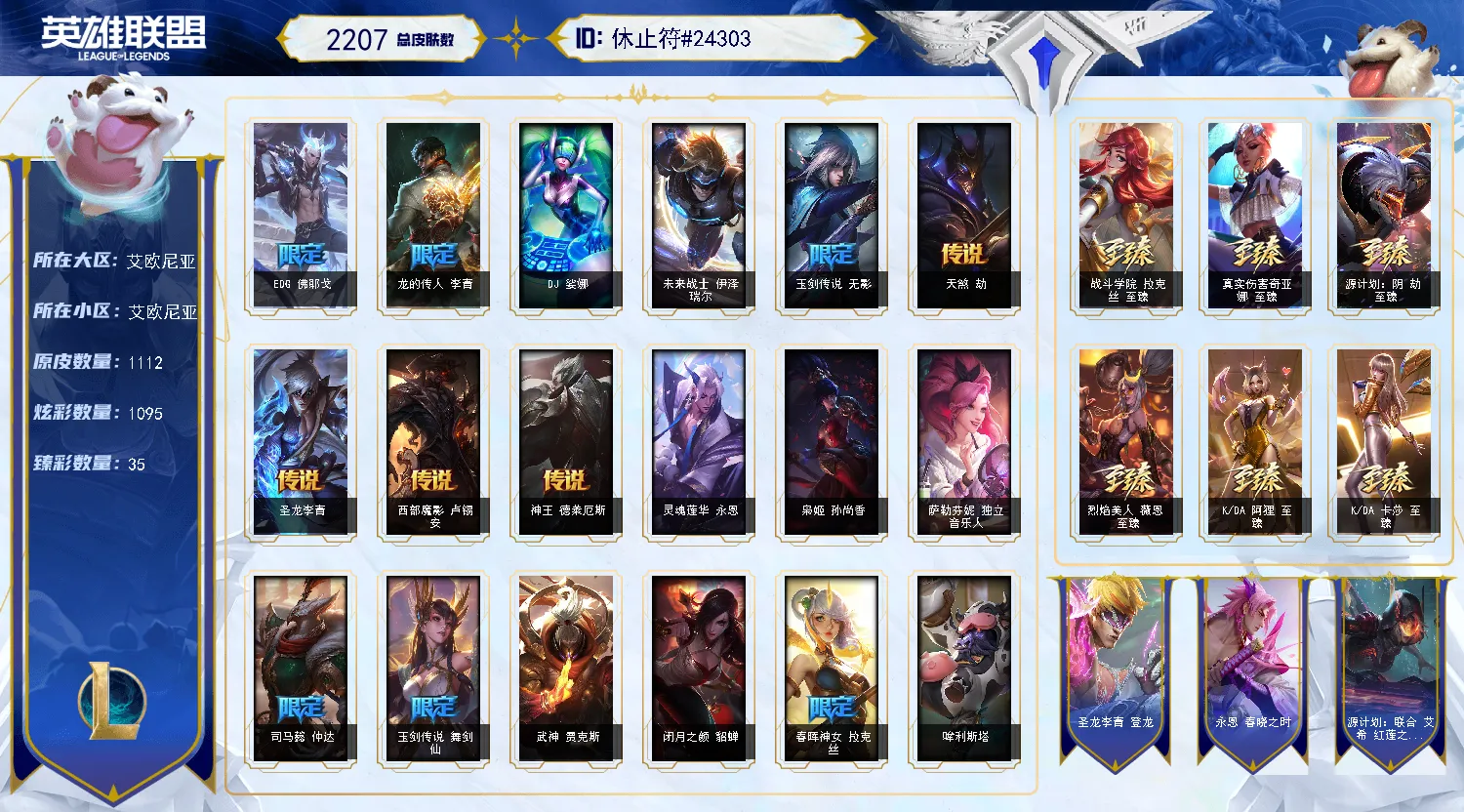【特价】█海克斯满级█允许排位█2204皮█艾欧尼亚█198限定█极品█龙虾琴刀█34臻彩█全英雄