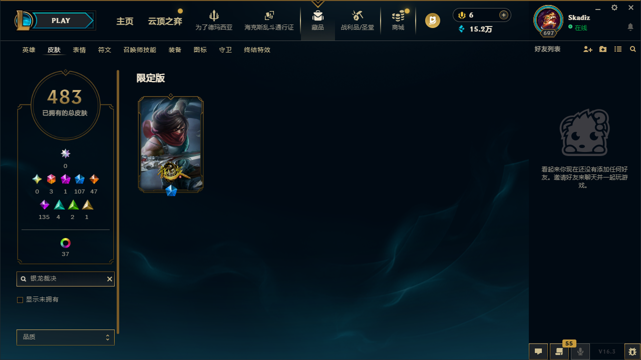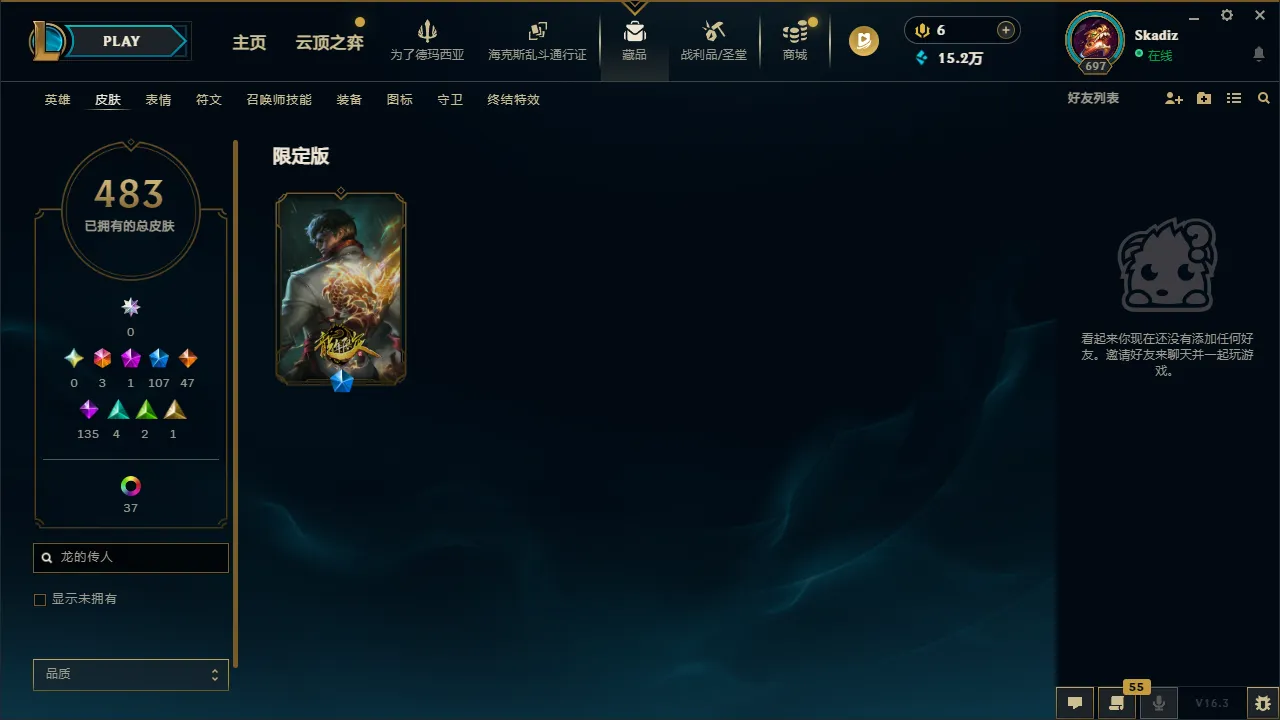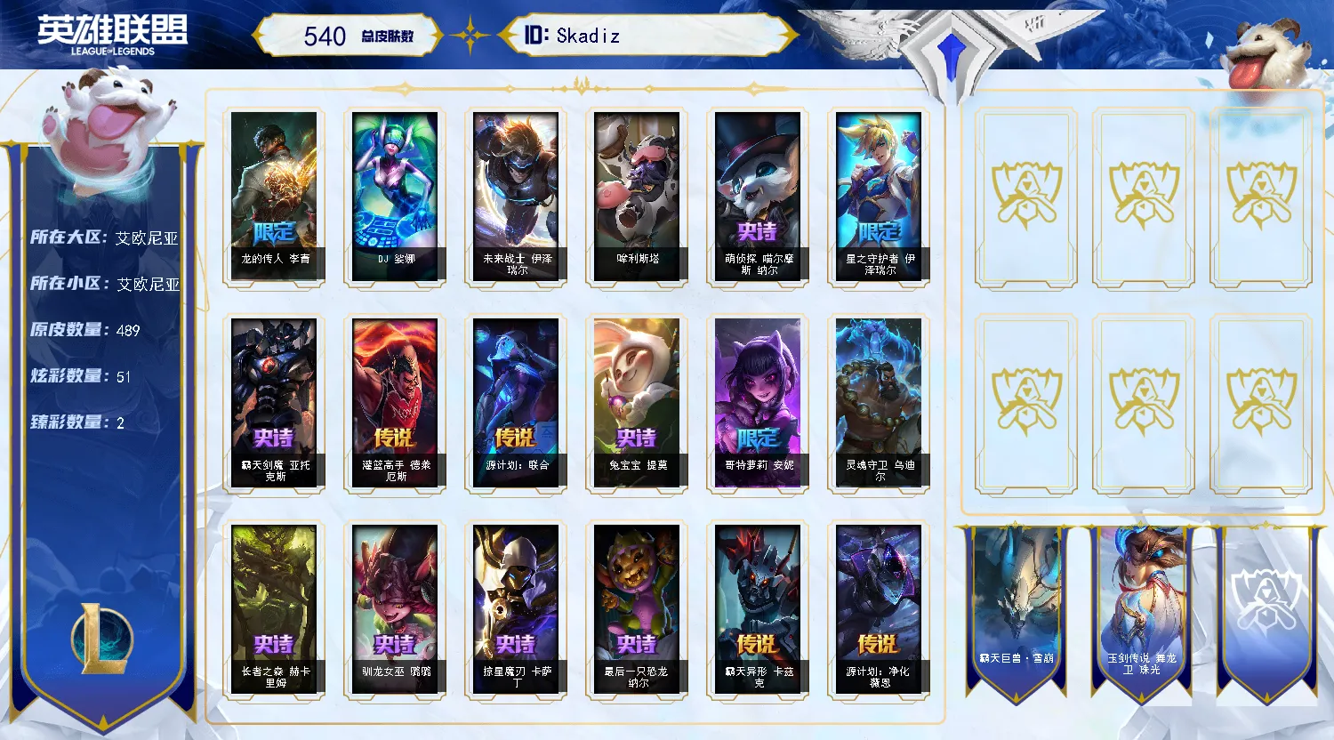 艾欧尼亚精选500皮。稀有限定:龙瞎龙刀龙猴龙嘴