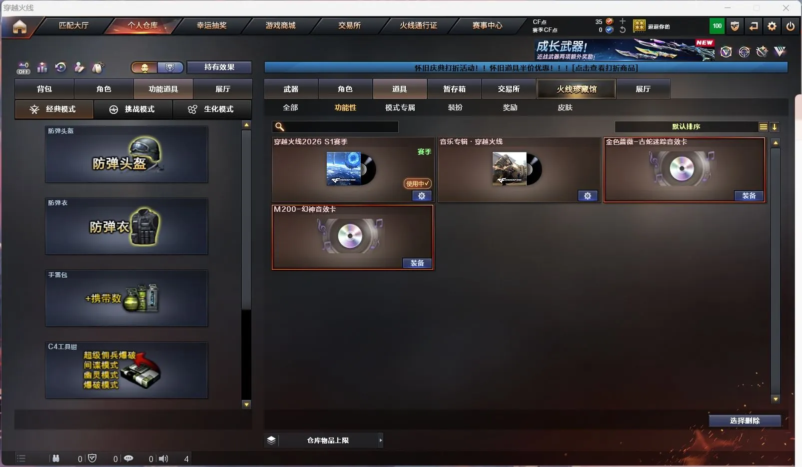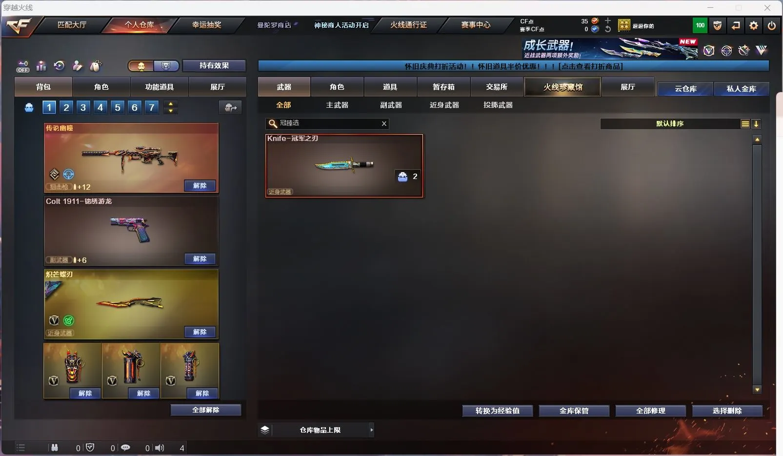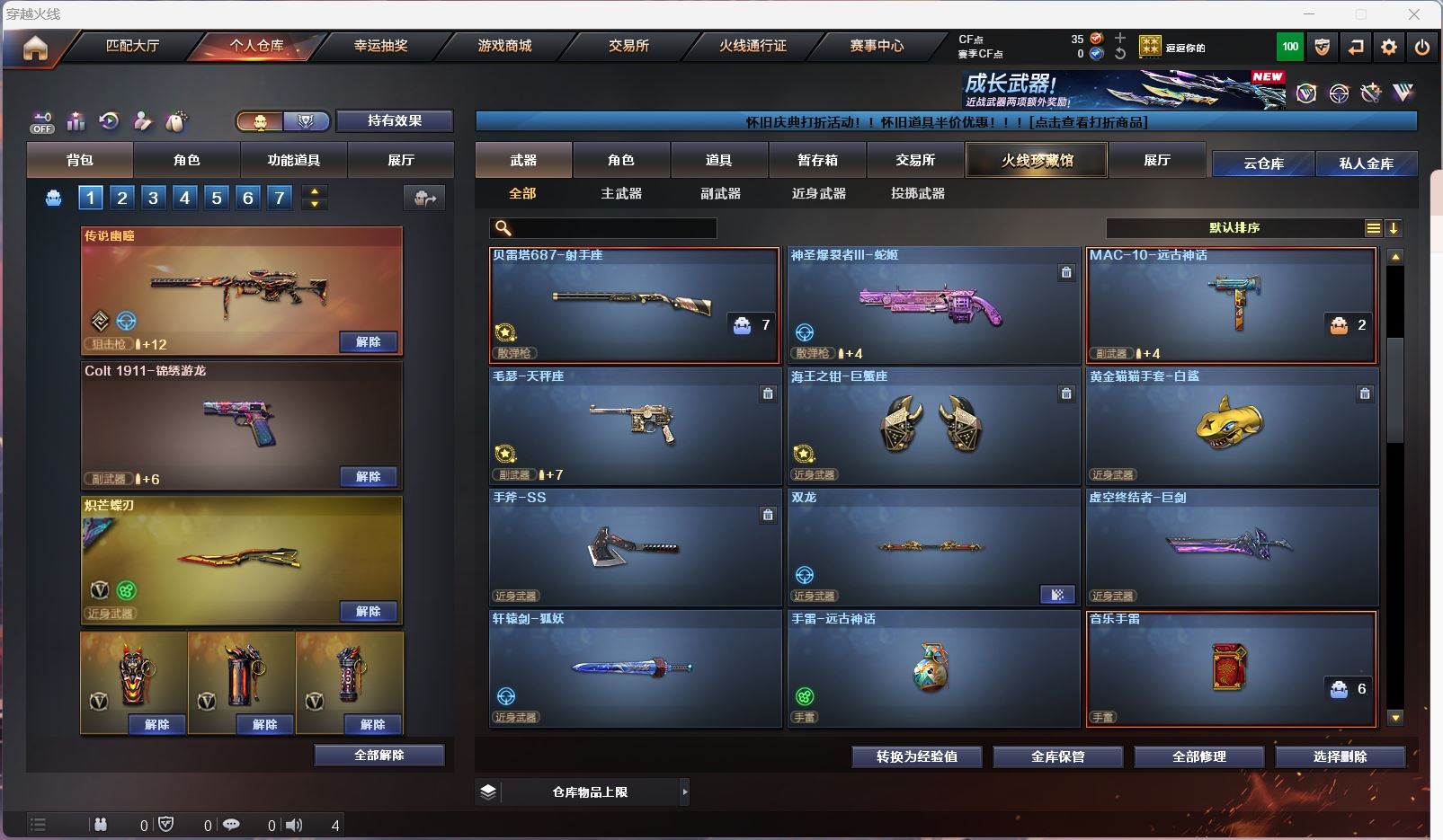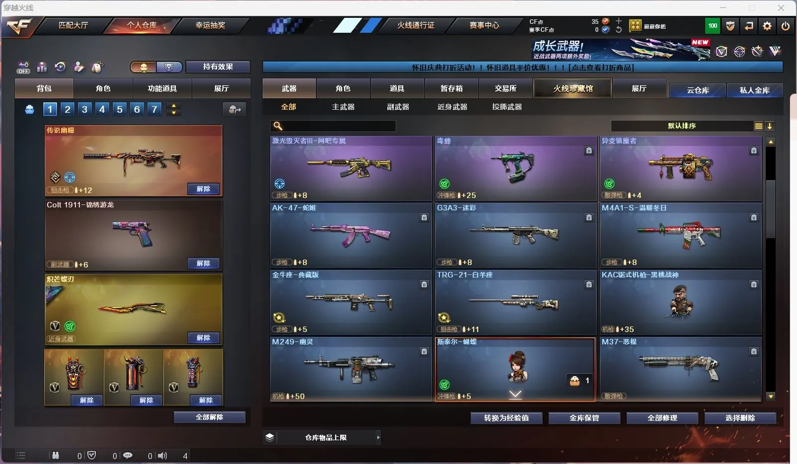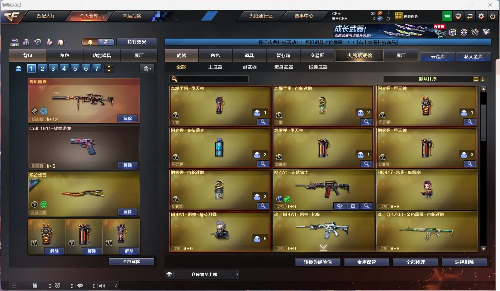 【传说幽瞳 】【m200幻神+幻神音效卡+星火小队 +冠军之刃】【98k星神】【6烈龙 炼狱 斯太尔蝴蝶 】【qbz金色蔷薇+破浪逐光 】【黑龙】【裁决】【炽芒蝶刃+破浪逐光】【武器:海王】【9手枪:天神*8 修罗 】【6刀具:屠龙*3 尼泊尔雷霆 堕天神 】【雷套:堕天神雷】【小人枪:朱雀蛇隐宗 雷神精英刀锋 毁灭孙三炮 天龙曼陀罗 火麒麟灵狐 】【音效卡:幻神音效卡 】【四防角色:毒蝰术士 月兔特工 】