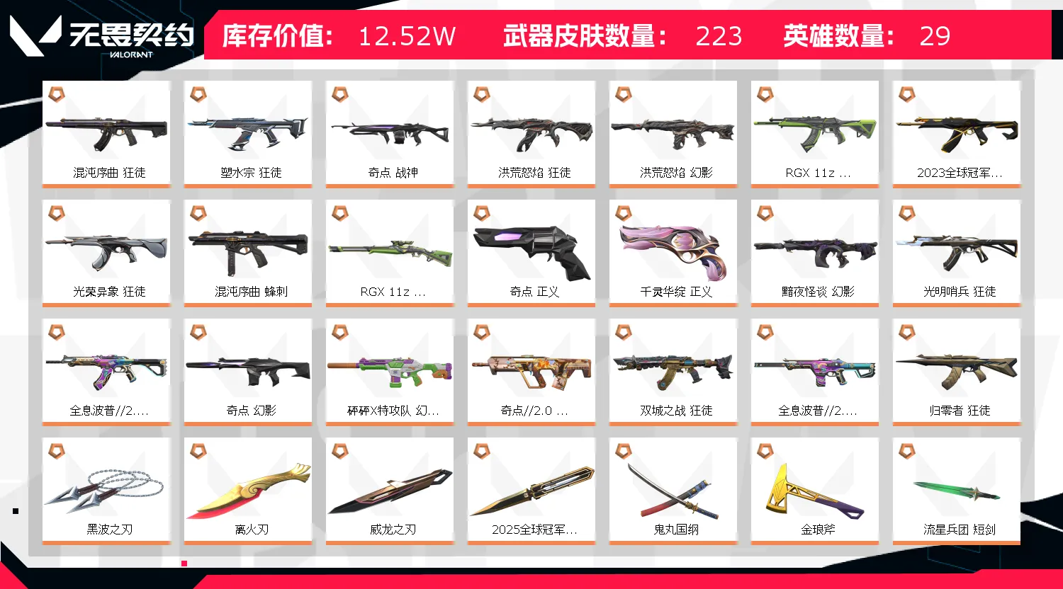 【当前段位:铂金II】23刀32狂徒✨离火刃✨23 25冠军套✨显卡爪鬼丸威龙黑波奇点✨混沌盖亚塑水流脓猫猫狂徒✨古神幻影