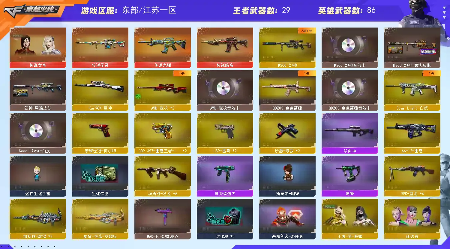 传说光耀暗裔圣灵女帝幻神周瑜黄忠+音效+USP雷暴星神白虎QBZ+音效蝴蝶清道夫+6烈龙+6盘