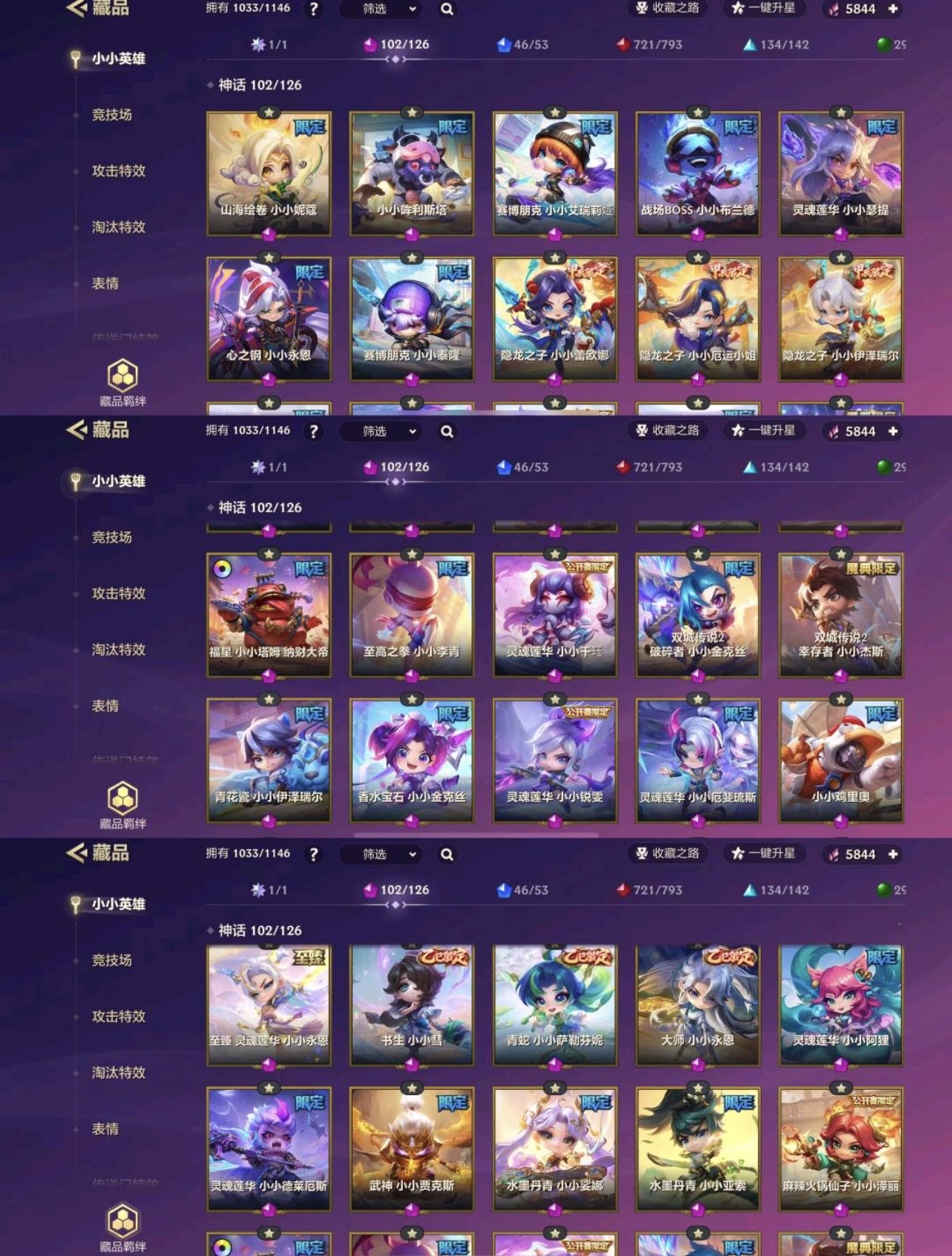 战斗学院 小小杰斯✅未来战士 小小伊泽瑞尔✅至臻 小瑞✅究极大怪兽 胡子喵✅神龙尊者 小小季青✅烈焰 银河二连星✅银河三连星✅kda阿卡丽✅kda伊芙琳✅斗魂觉醒拉克丝✅电玩人马✅电玩火男✅✅
