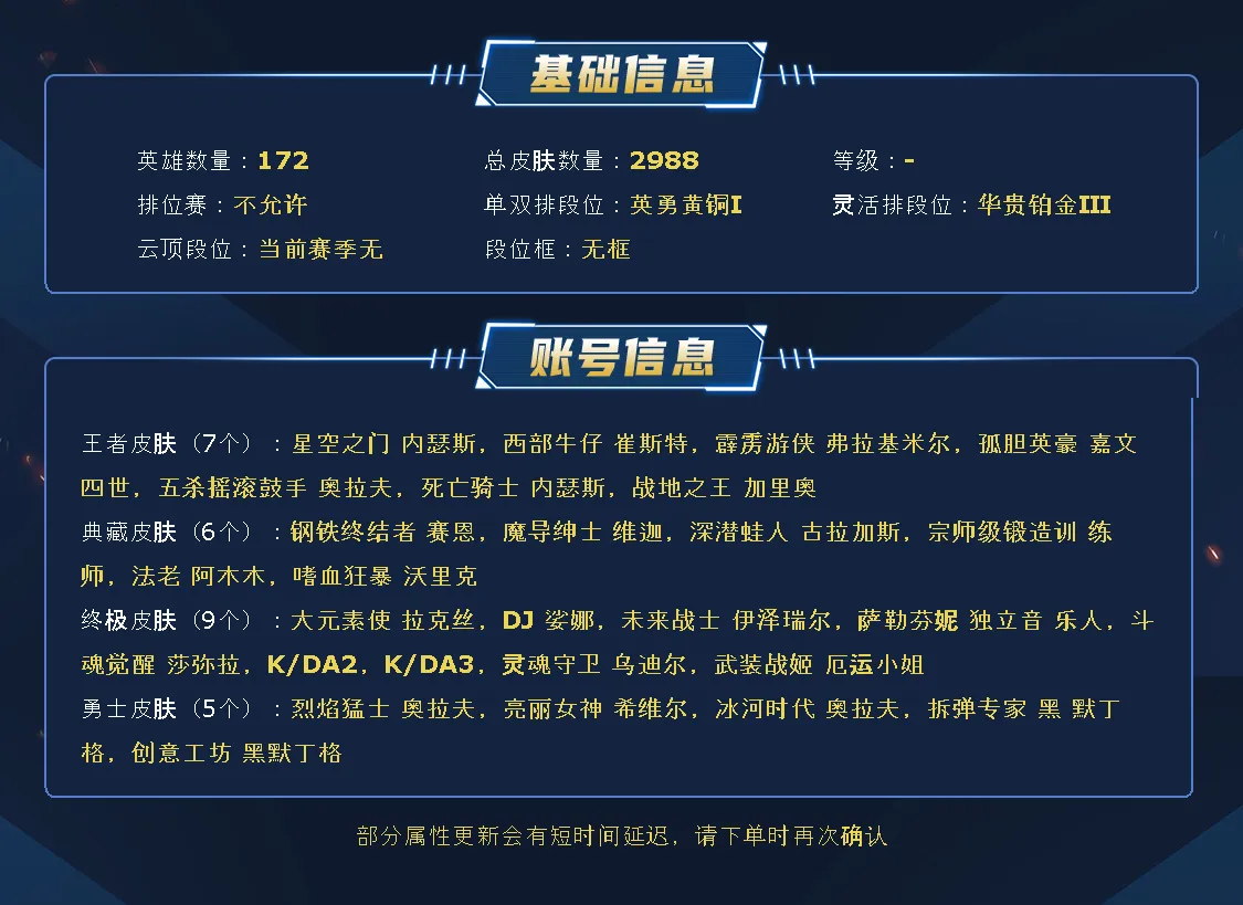 艾欧尼亚2900皮丨1625原皮丨1360炫彩丨351限定丨115神话丨55臻彩丨7终极